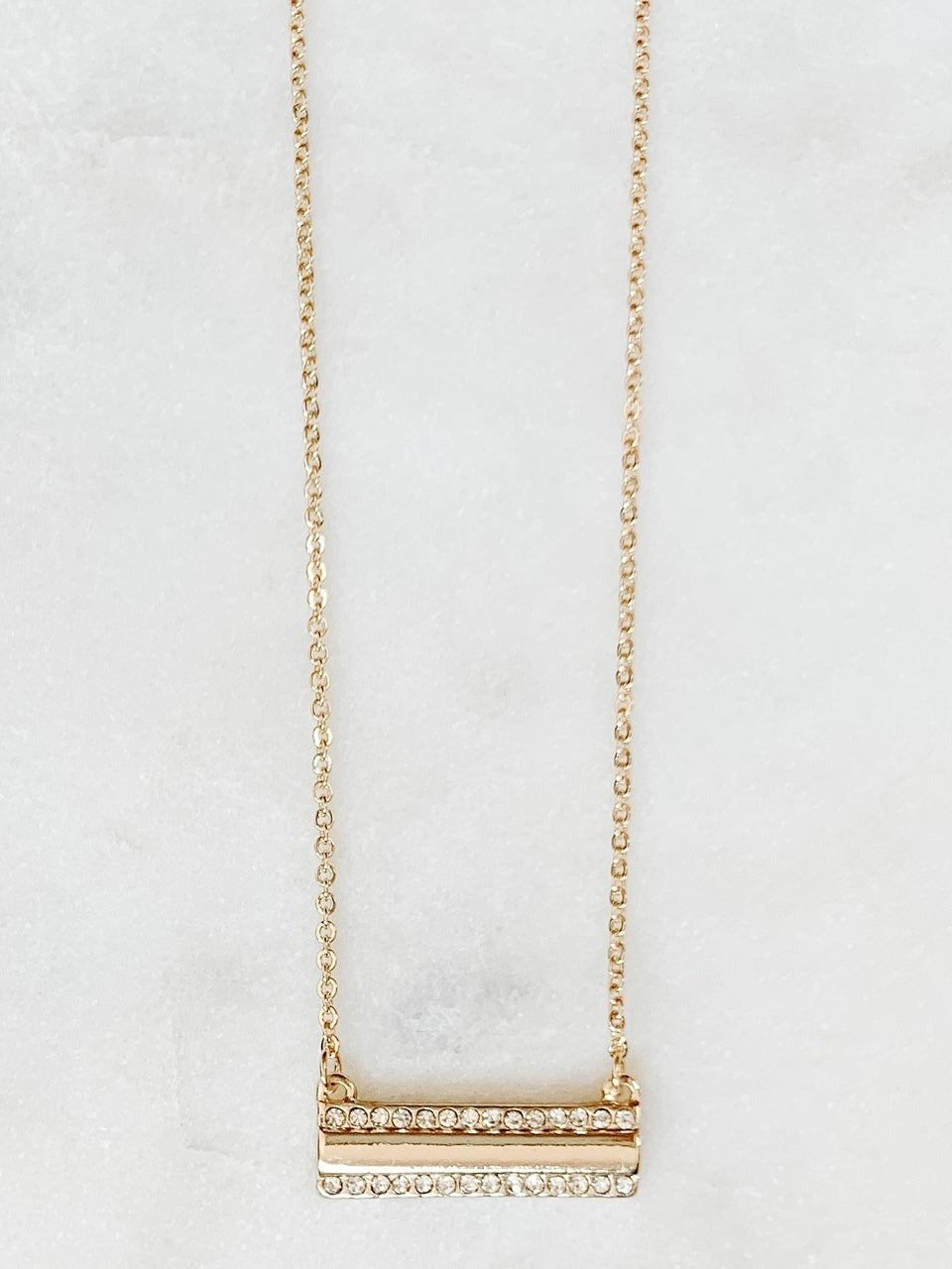 This Dainty Necklace with Pave Bar pendant is the perfect way to add a touch of sparkle to your day. The dainty chain is easy to style with any outfit while the pave bar looks stunning on its own or layered with other necklaces.