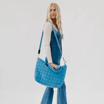Day Dreamer Quilted Tote Bag is the bag you never knew you needed. Functional as an everyday and everything catch all, you will love the organization pockets and function of this tote. Our favorite part is the outside back pocket that converts to a trolly sleeve to make travel a breeze. The accented color straps add a pop of interest to your newest addition!