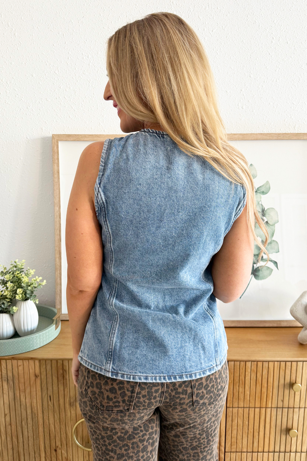 This button-up vest features a sleek, tailored fit with subtle asymmetrical detailing along the bottom hem for a modern touch. Designed to layer effortlessly, it adds structure and polish to any look. The front button closure offers classic styling, while the unique hem detail elevates its overall appeal. Ideal for both casual and dressed-up ensembles!