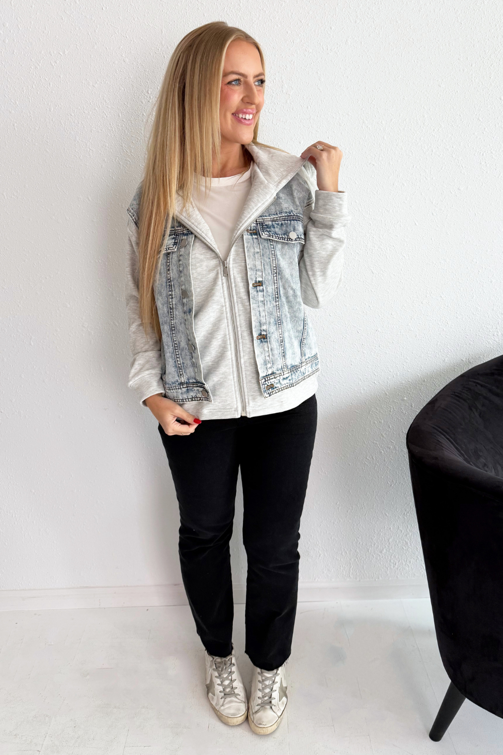 This denim contrast twofer hoodie jacket brings effortless layered style with its classic denim shell and soft, sweatshirt-style hood and sleeves. The mixed textures create a modern, casual look that’s perfect for everyday wear. Throw it on for an instant, laid-back edge.