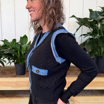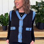 Denim Trim Knit Cardigan