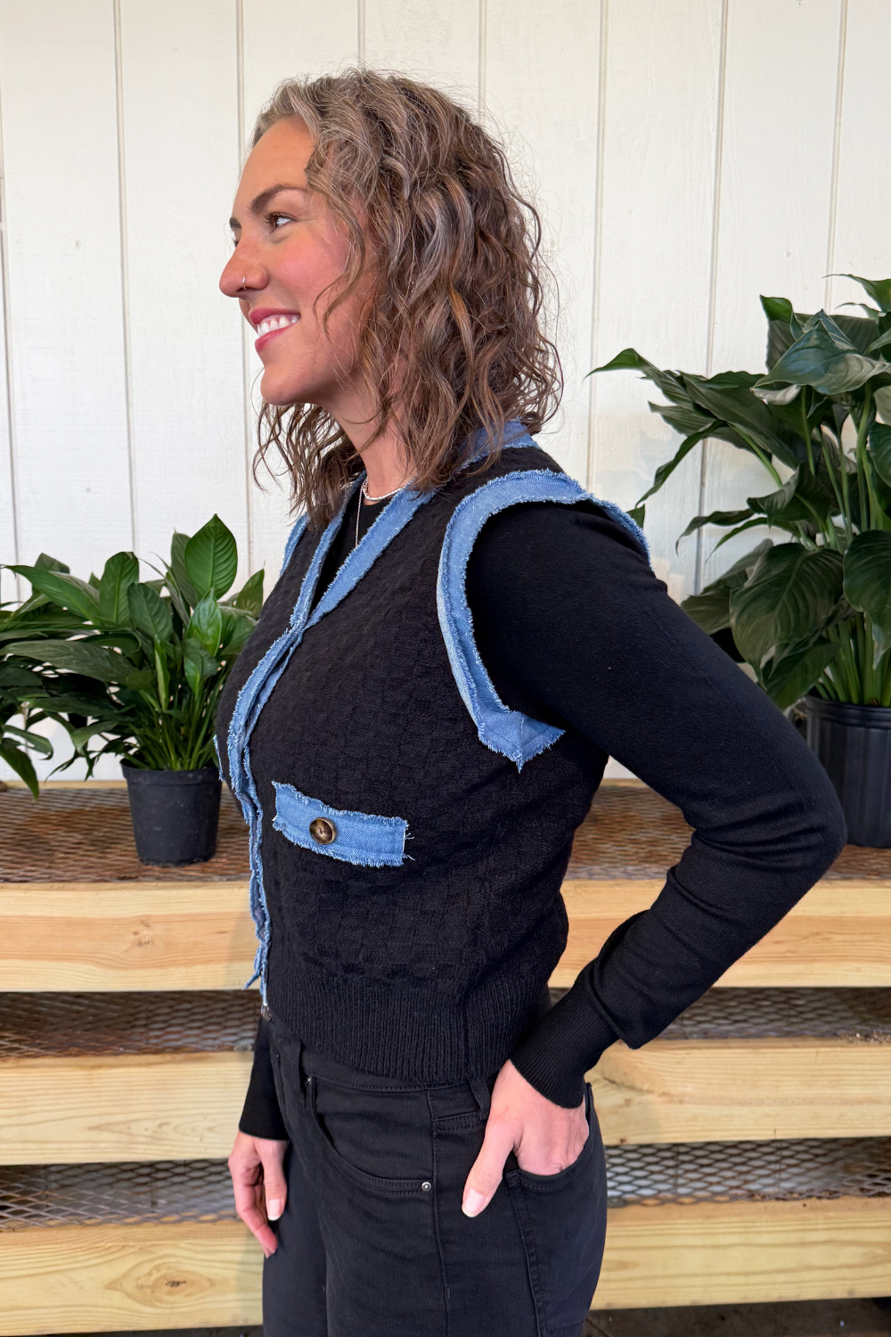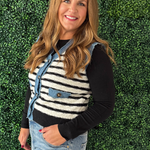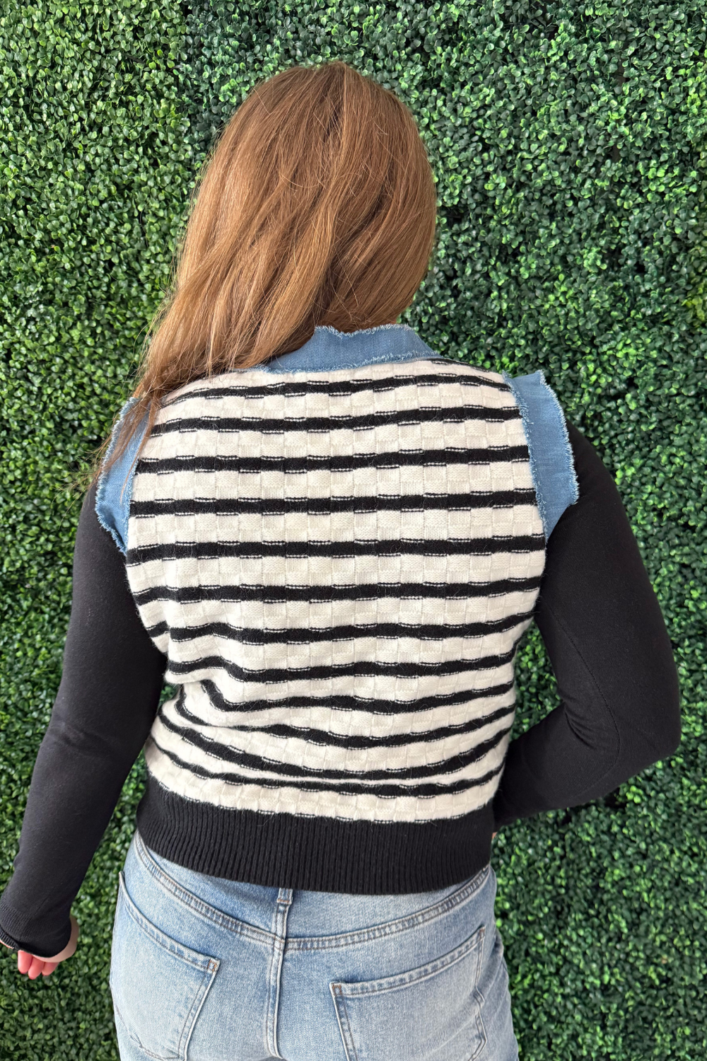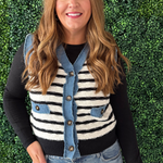 Bring a touch of casual charm to your look with this denim trim knit cardigan. The soft knit fabric offers cozy comfort , while the denim adds a stylish, laid-back edge. Featuring button-front details, it's perfect blend of classic and comfortable. Layer it over a tee or dress for an effortlessly cool finish!