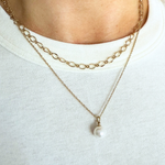 Elevate your outfit with this double chain necklace! Featuring a pearl pendent, this is the perfect detail to add a little fun to each outfit!