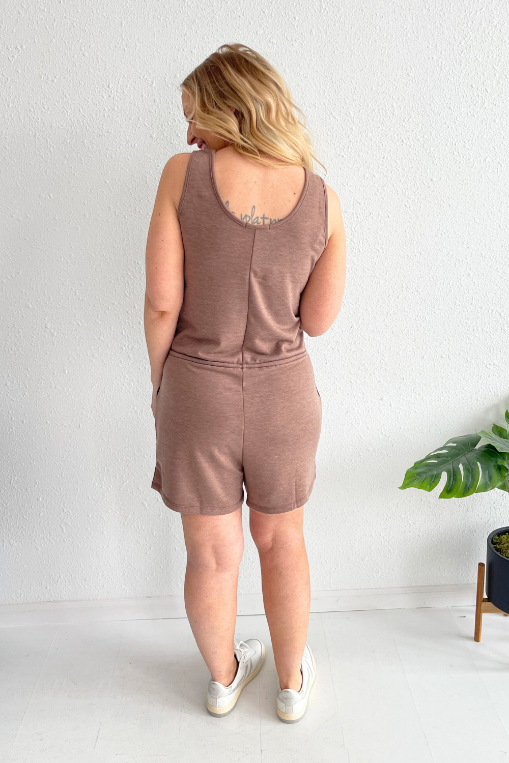 The Drawstring Waist Sleeveless Romper with Side Pockets will be your warm weather favorite! This sleeveless romper has a double U neck, side pockets, and a flattering drawstring waist. Add your sneakers or sandals for a fun casual outfit.