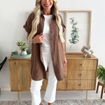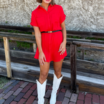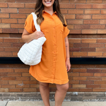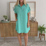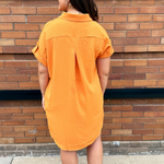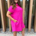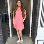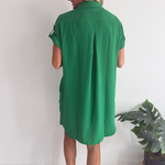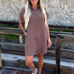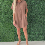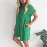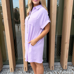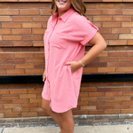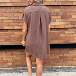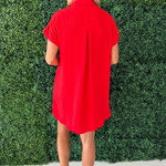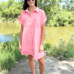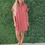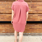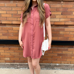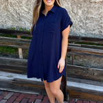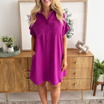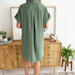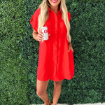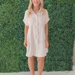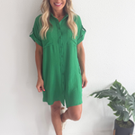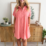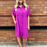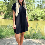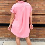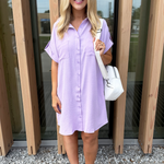 The Drop Shoulder Button Up Woven Shirt Dress is a spring must-have. This easy to wear shirt dress features a drop shoulder, chest pockets, and a button front. Wear this dress with sneakers or sandals for a fun casual look.