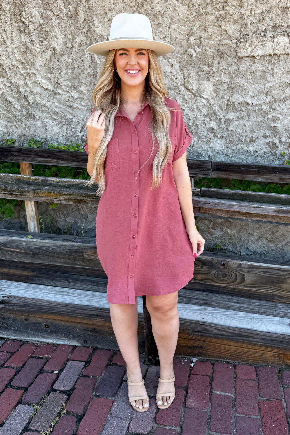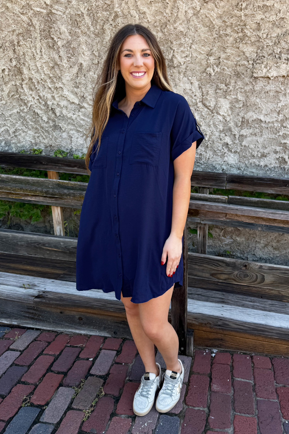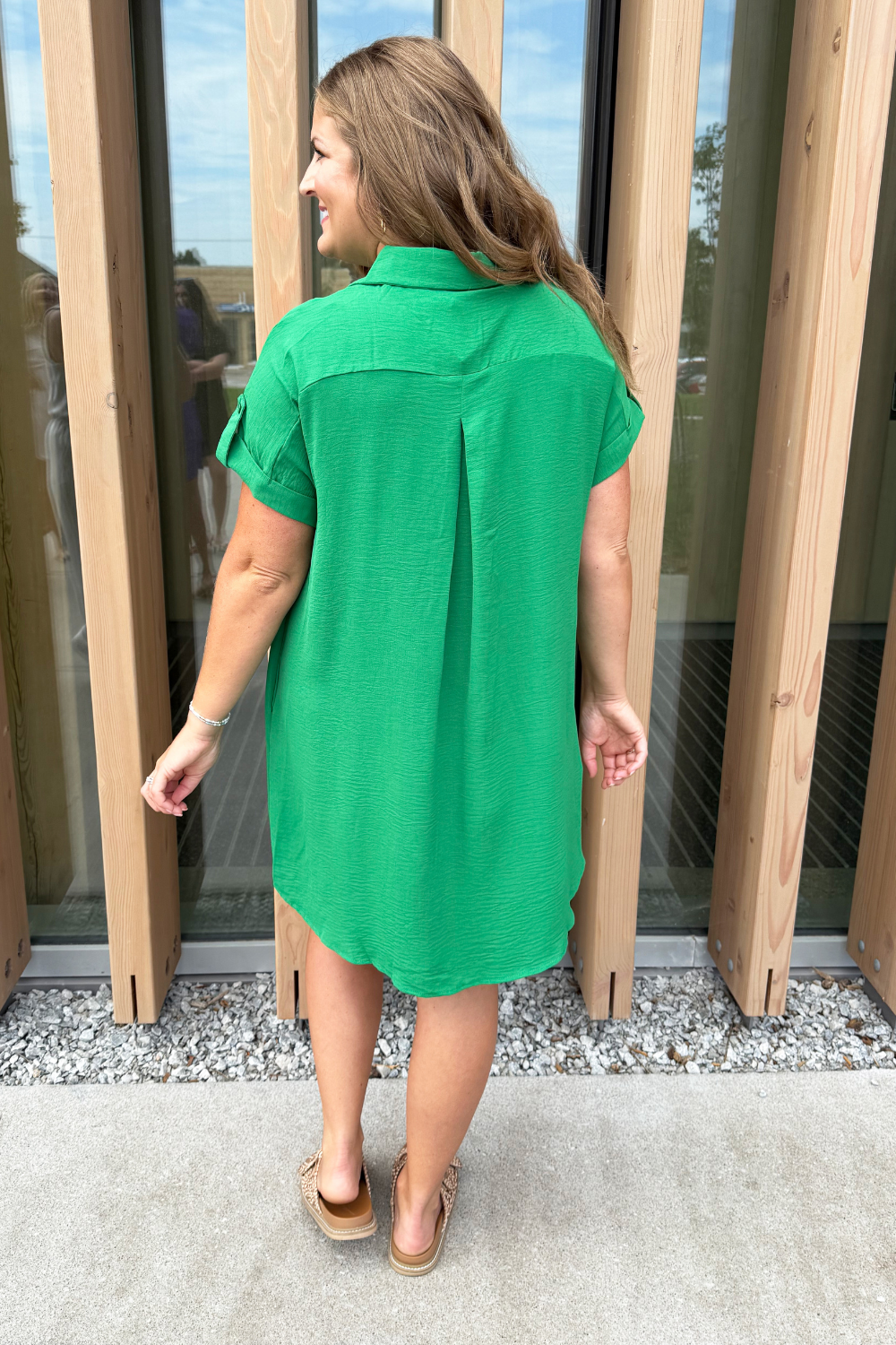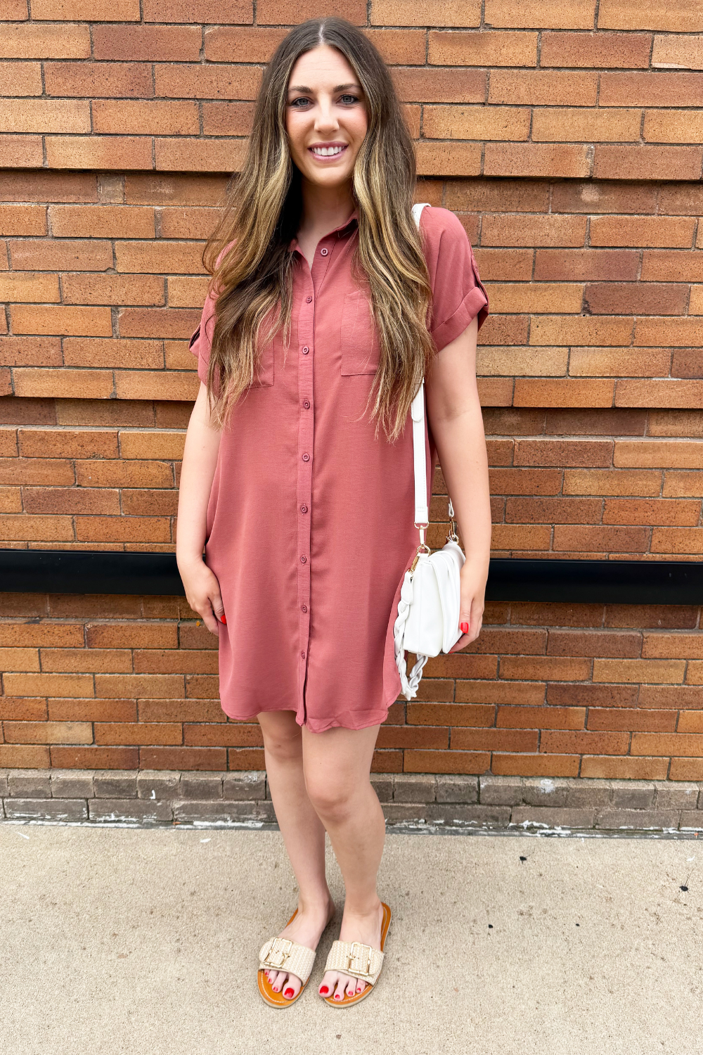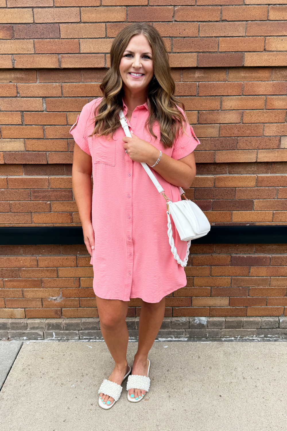 The Drop Shoulder Button Up Woven Shirt Dress is a spring must-have. This easy to wear shirt dress features a drop shoulder, chest pockets, and a button front. Wear this dress with sneakers or sandals for a fun casual look.