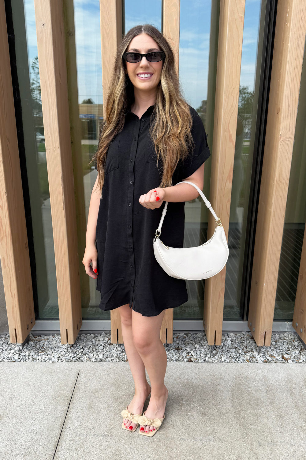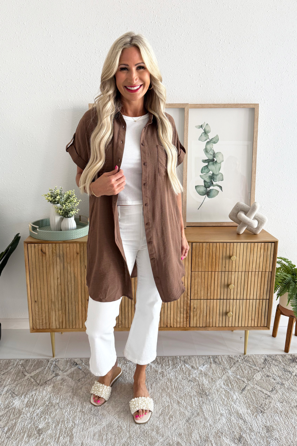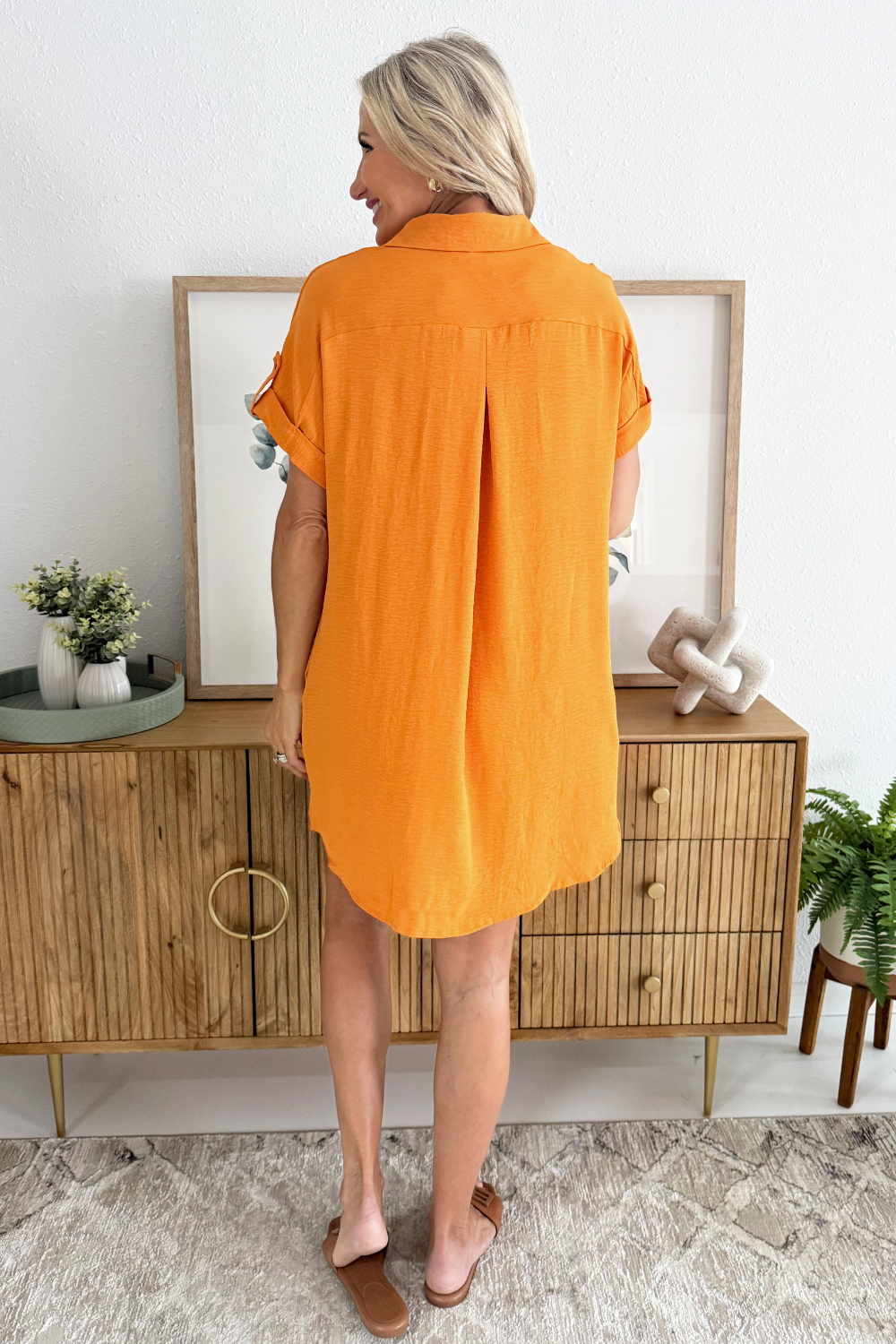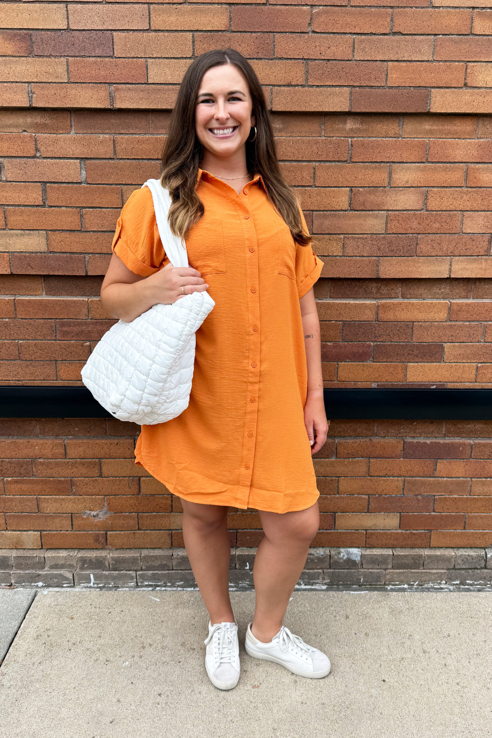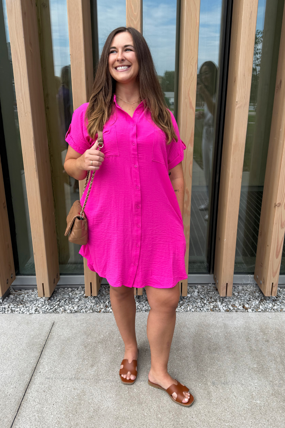 The Drop Shoulder Button Up Woven Shirt Dress is a spring must-have. This easy to wear shirt dress features a drop shoulder, chest pockets, and a button front. Wear this dress with sneakers or sandals for a fun casual look.