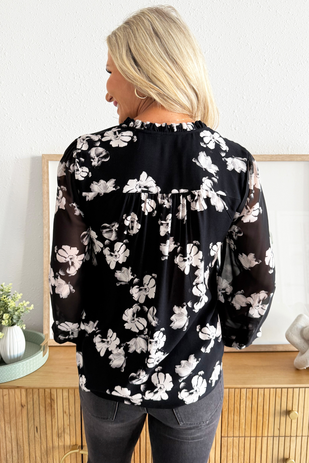 Another fall floral favorite from Liverpool! This takes a simple blouse and adds tie details and a fresh floral pattern to create an elegant piece that can be worn again and again! Pair back to your favorite denim or trousers for an outfit that takes you effortlessly from day to night!