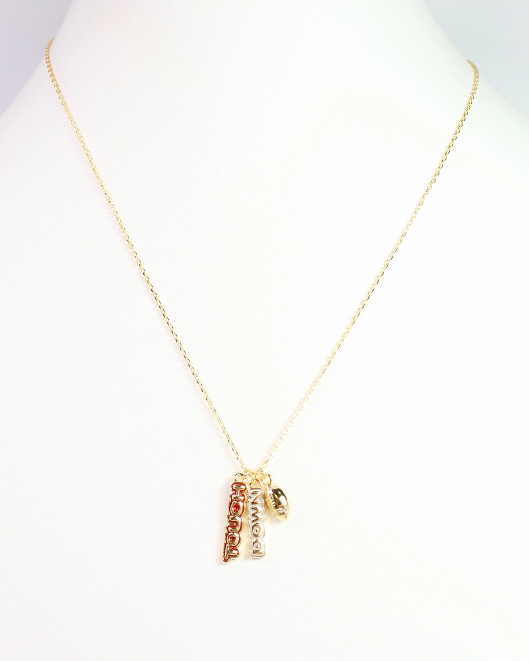 Celebrate your team spirit with this playful Enamel Touch Down Necklace! Featuring a vibrant red and white enamel charm alongside a sparkling gold football adorned with CZ stones, all hanging from an 18K gold-dipped chain. It's the perfect accessory to show off your love for the game with a fun, stylish twist.