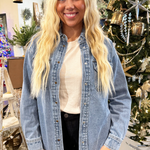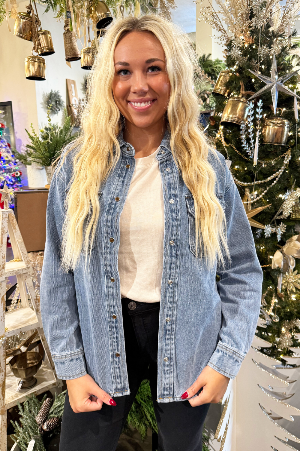 Effortlessly cool in an oversized silhouette, this laidback layer is featured in a button-down style with a collared neckline and pocket detail at the chest! Layer over your favorite basics and pair back to denim or trousers for endless styling options!