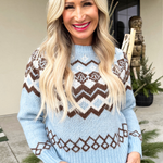 Cozy up in classic charm with this Fair Isle crew neck sweater, featuring timeless patterned detailing for a festive, vintage-inspired look. Crafted from soft, warm fabric, it’s perfect for layering on chilly days or wearing solo for effortless style. A versatile wardrobe staple that pairs beautifully with jeans, skirts, or trousers!