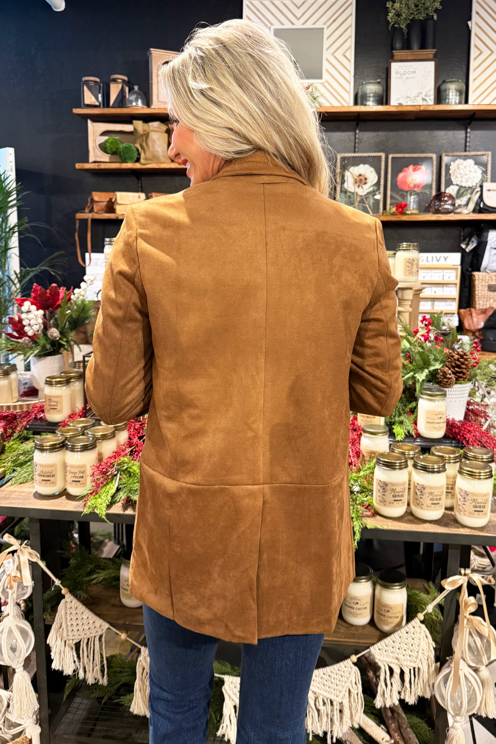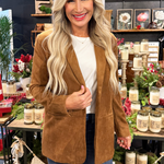 Perfect for the holidays, this Faux Suede Relaxed Fit Blazer will keep you comfortable and elegant! Layer over your favorite basics and pair back to dark denim and heels for a look perfect for any event or holiday party!