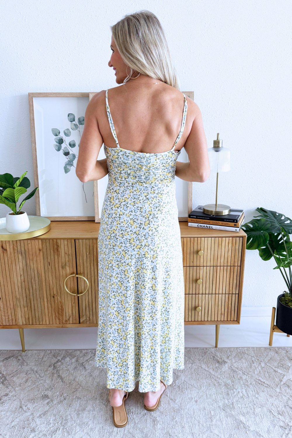 Comfort meets chic with this incredibly soft Faya Idra Ditsy Maxi Dress. With adjustable straps, a shirred bodice, and flattering v-neck, this ditsy floral print dress is sure to be a new favorite in your closet.