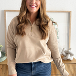 Stay cozy and stylish in this Fleece French Terry Half Zip Sweatshirt. It's perfect for laid-back days or cool weather adventures. The half-zip neckline adds a sporty touch and easy versatility. Pair it with leggings or denim for an easy, casual look!