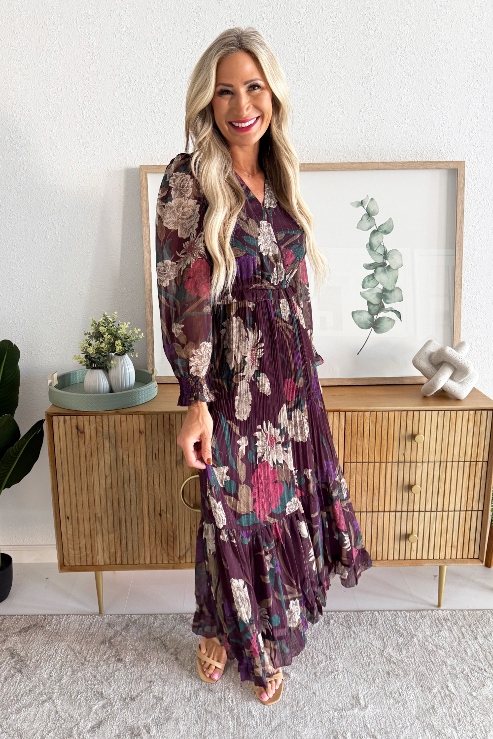 This floral maxi dress is effortlessly feminine, featuring a flowing silhouette that moves gracefully with every step. Delicate pleated details add texture and dimension, and the floral pattern gives it a fresh feel! Both comfortable and elegant, this is an add-to-cart no brainer!