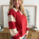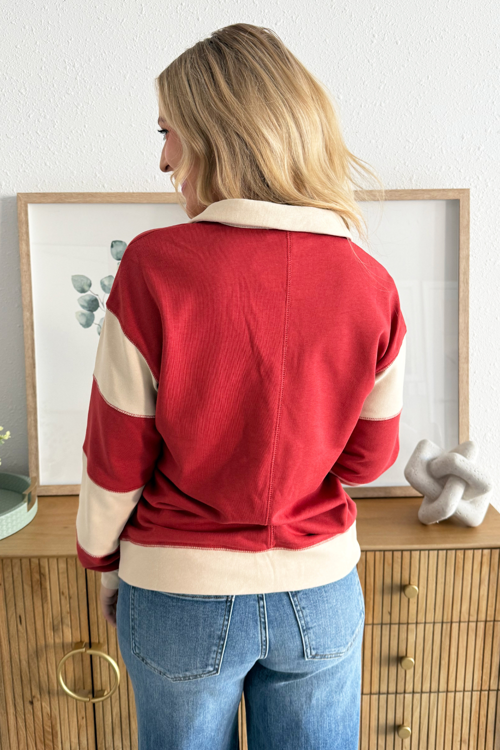 Add effortless charm to your everyday look with this French terry collared color block Henley top. Made from soft, lightweight terry fabric, it offers cozy comfort with a touch of polish. Perfect for pairing with jeans or joggers for an easy, stylish outfit.
