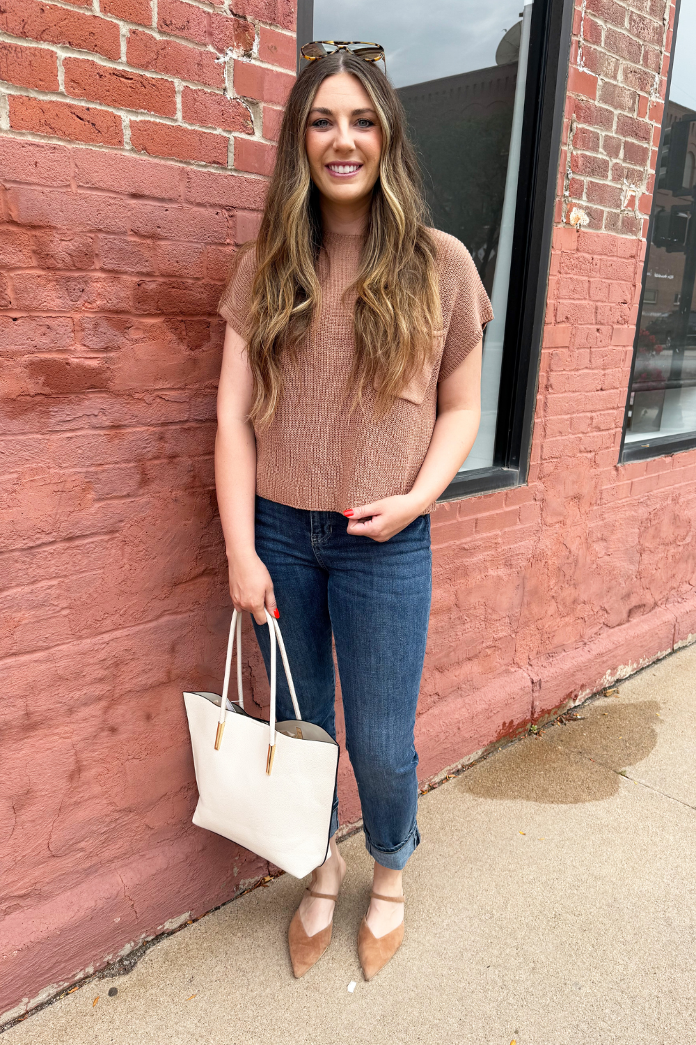 This knit mock neck sweater with a front pocket is the perfect fall staple! This simple piece can be worn alone or layered this fall. Pair this top back to your favorite denim for an effortless look!