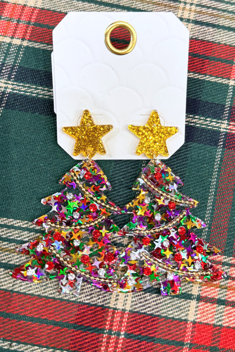 Glittered Resin Star Christmas Tree Dangle Earrings