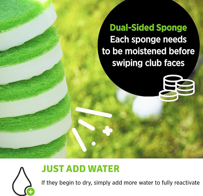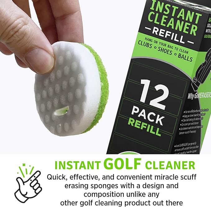 Remove dirt, mud, sand, and grass instantly from your golf accessories, clubs, and shoes; Quick, effective, and convenient miracle erasing sponges with a design and composition unlike any other golf cleaning product out there.