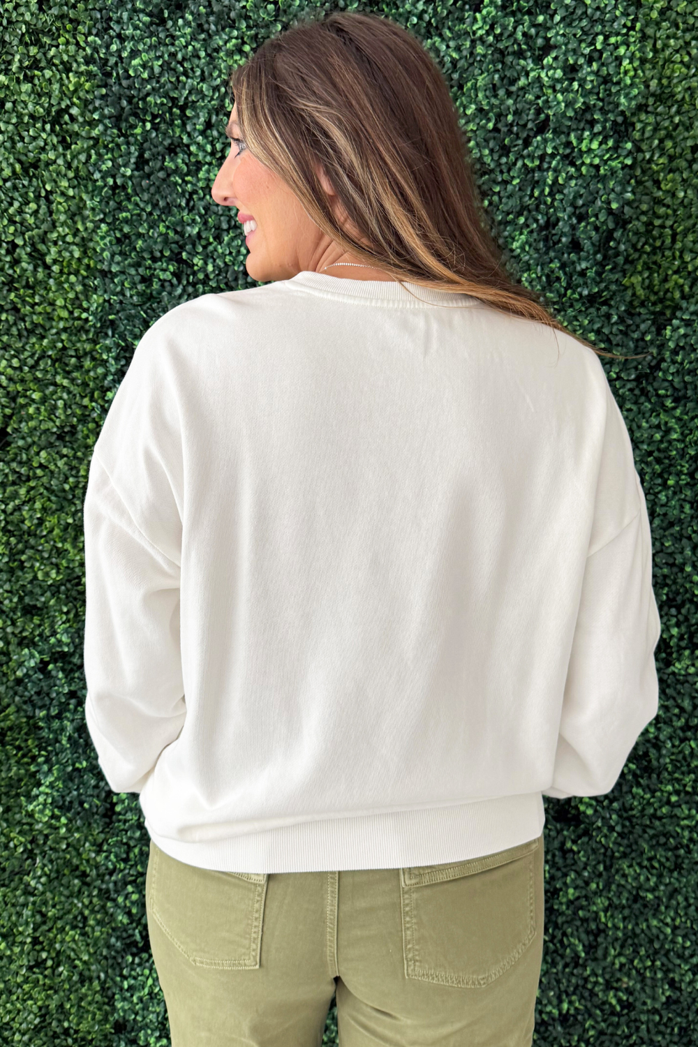 Bring on the good vibes in this cozy oversized sweatshirt, featuring a “Good Things Are Coming” screen print and scenic mountain-lake graphic. Made from ultra-soft brushed cotton fleece, it’s the kind of easy layer you’ll want to live in all season.