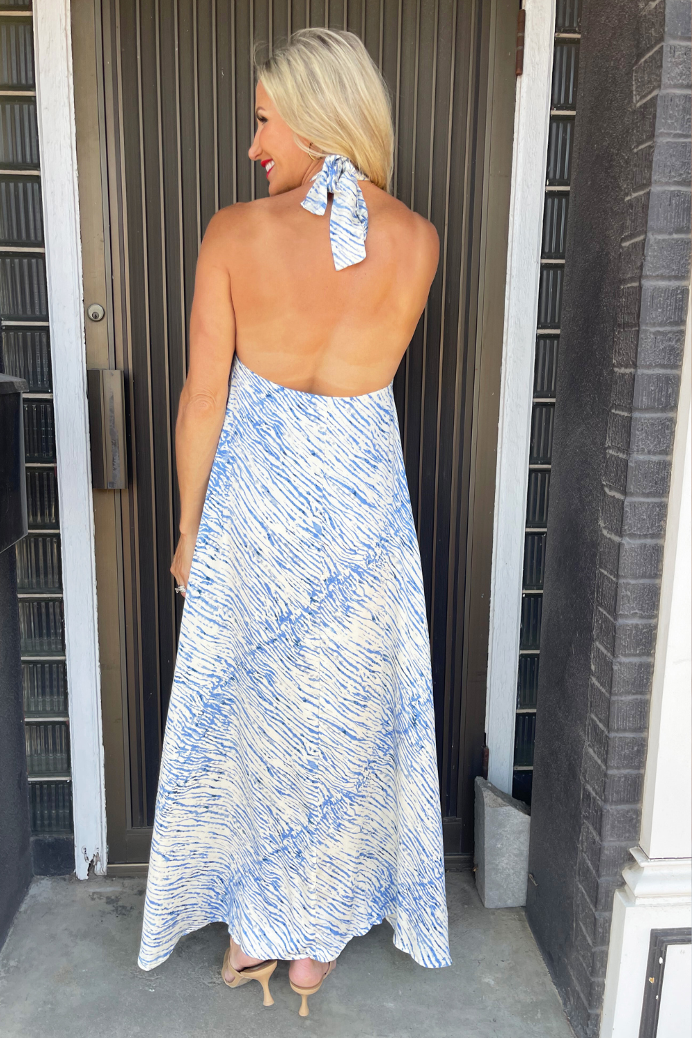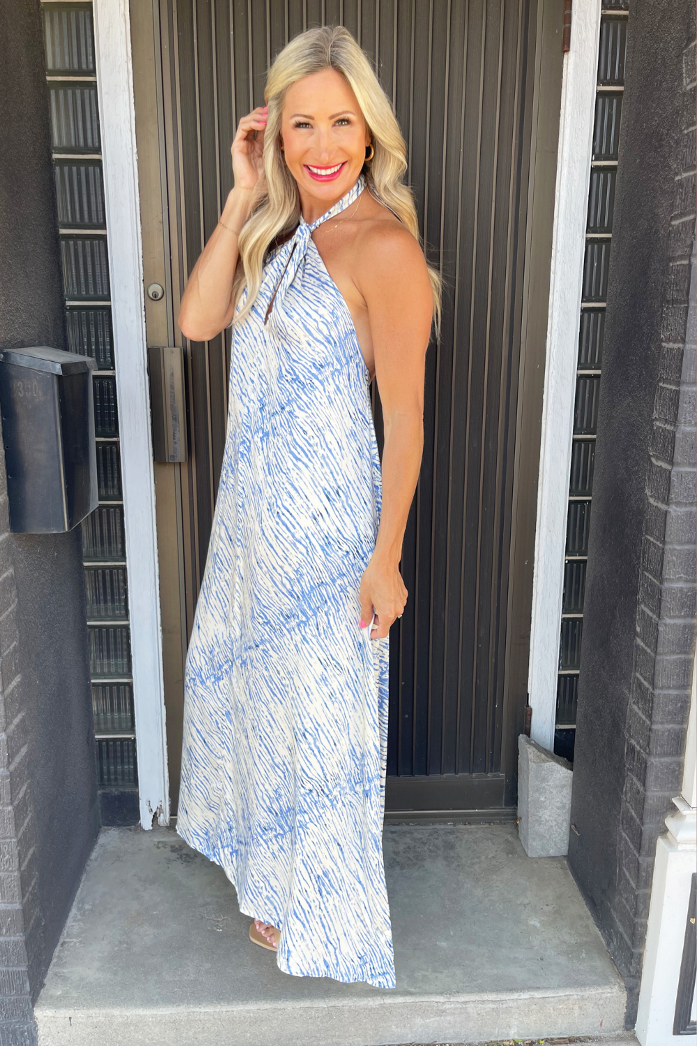 Add the Halter Twist Neck Maxi Dress to your cart now! This maxi dress is perfect for a variety of events. It has a high V neck with a twist and keyhole detail, and the halter straps tie in the back. The back is open on this dress and the pattern is oh-so unique! Add sandals and you are ready to go.