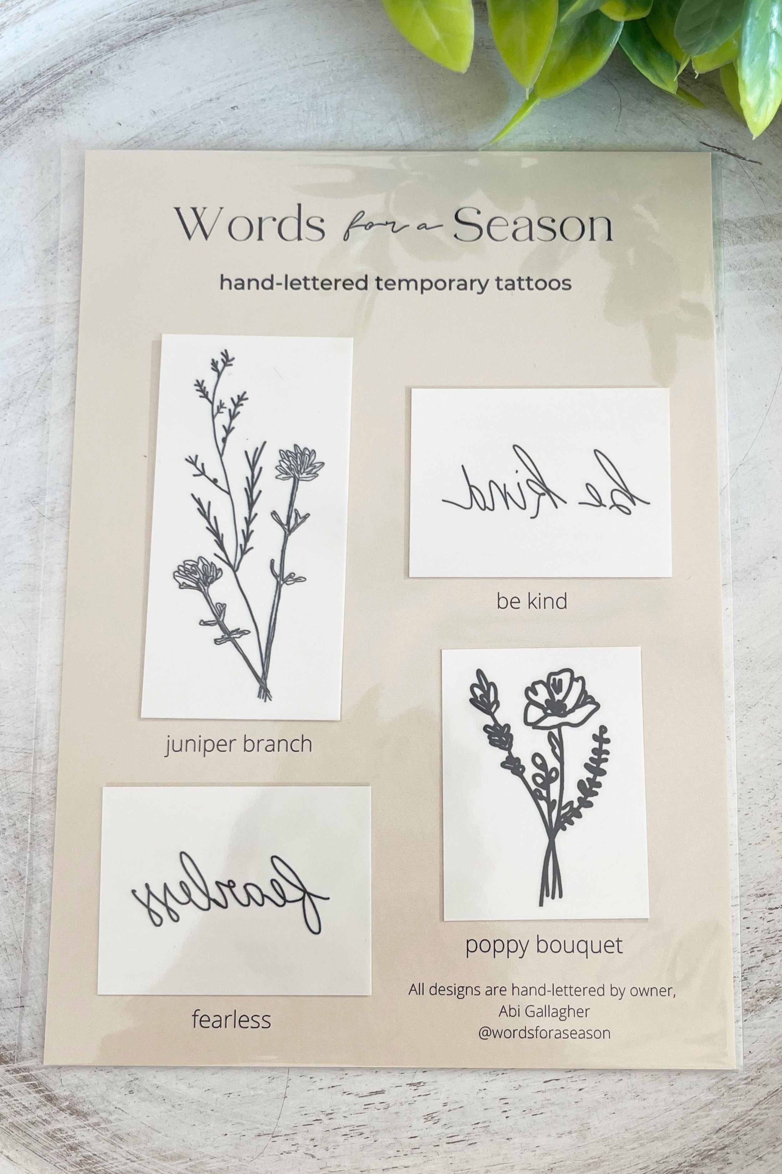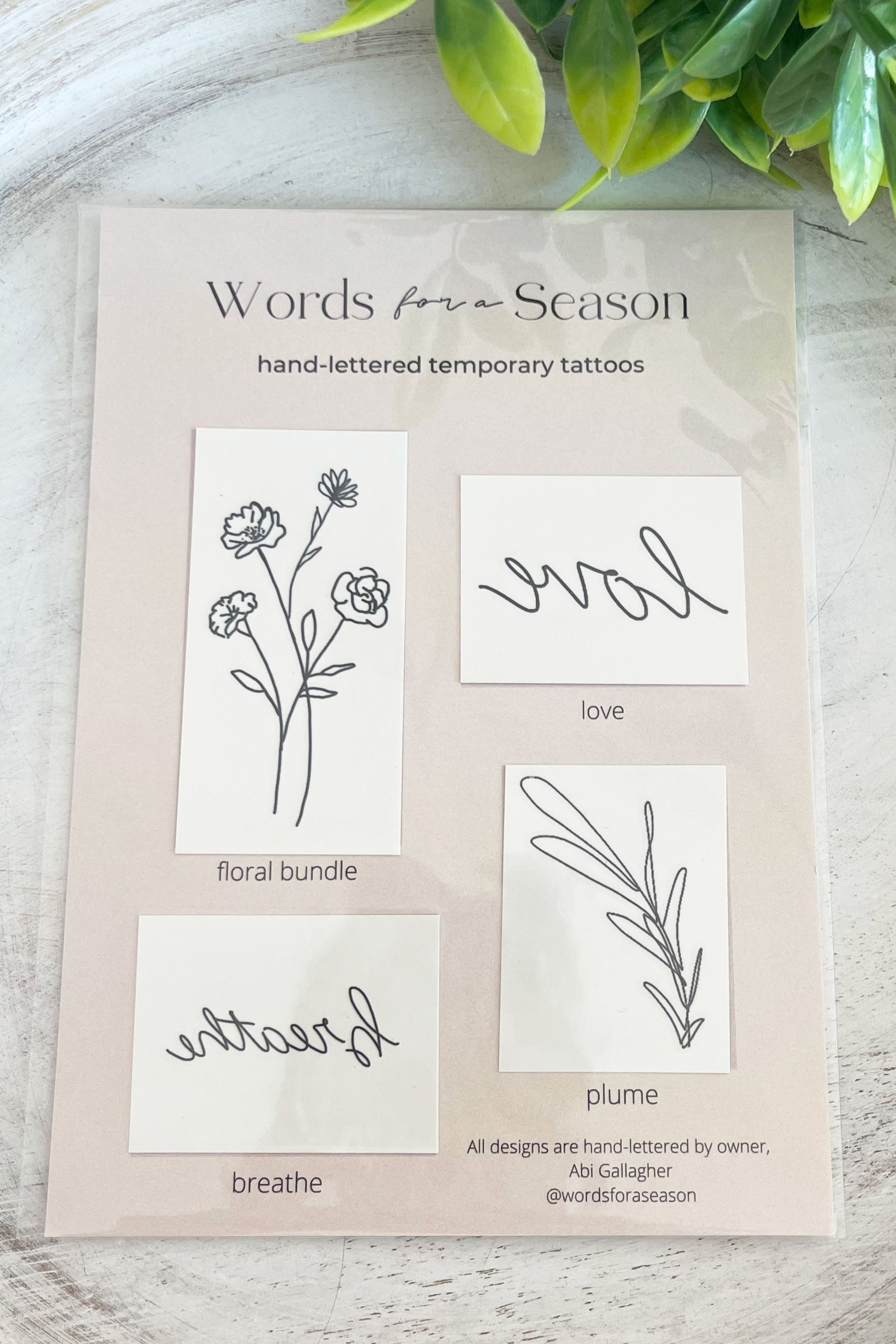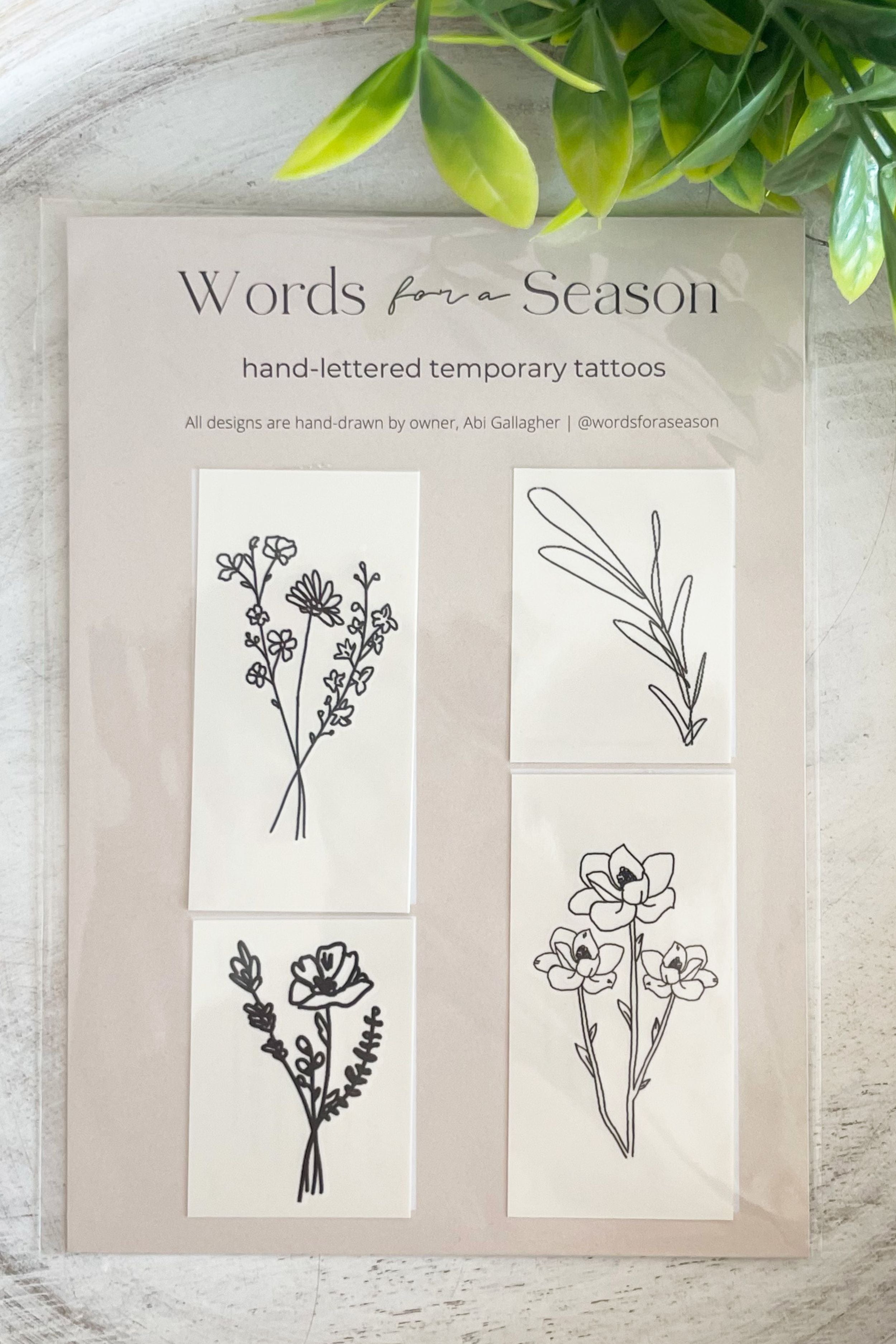 These temporary tattoos are hand-drawn by the owner of Words for a Season, Abi Gallagher.