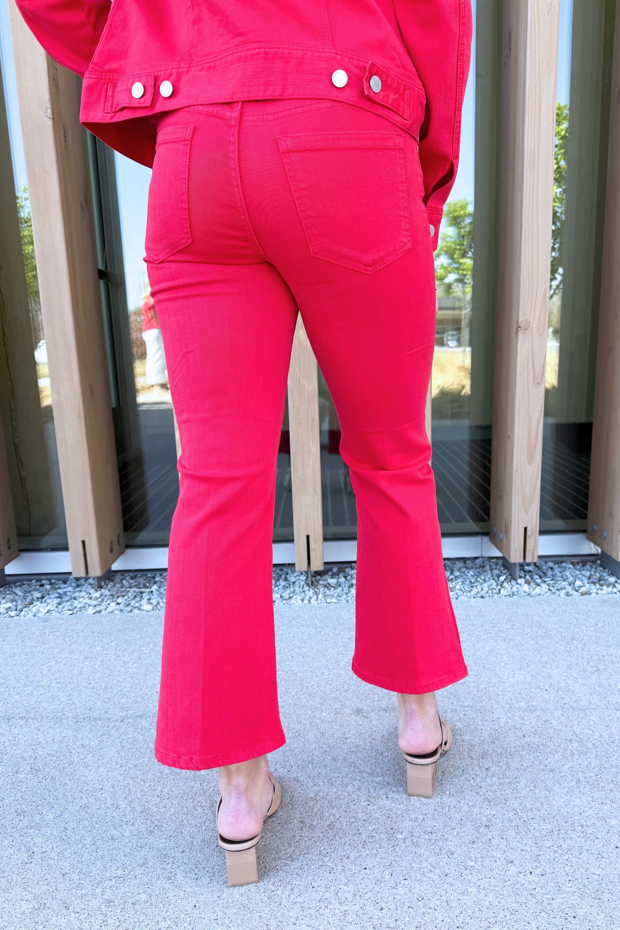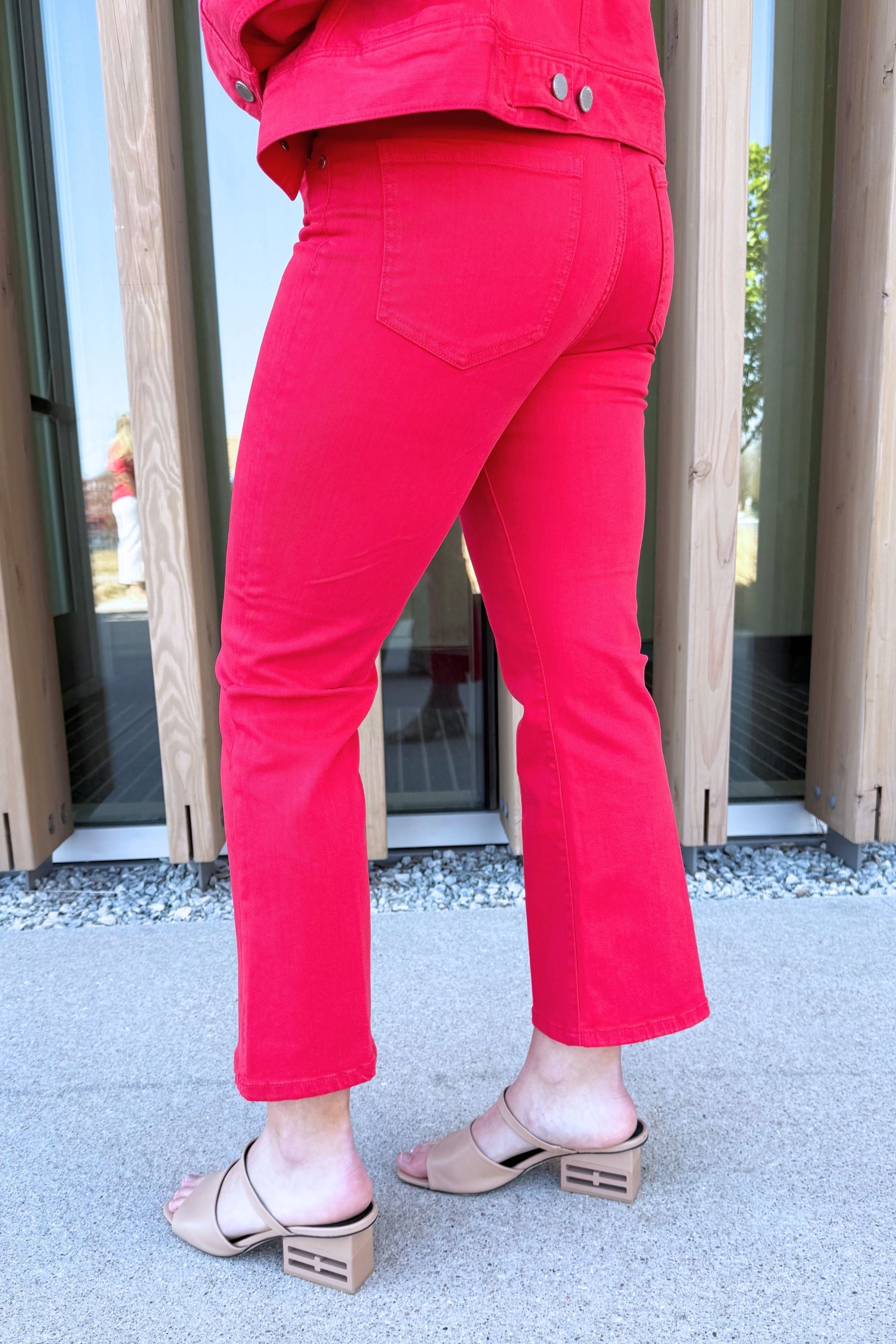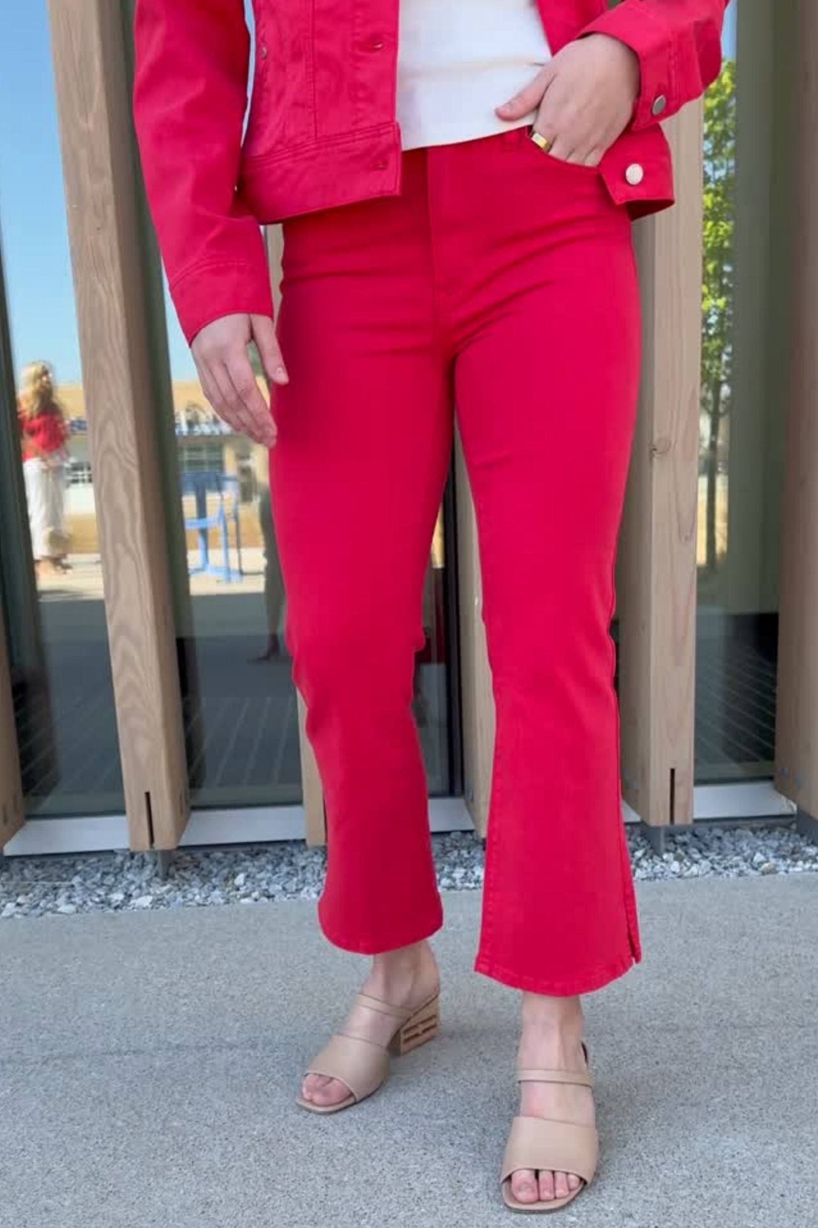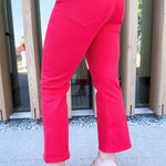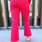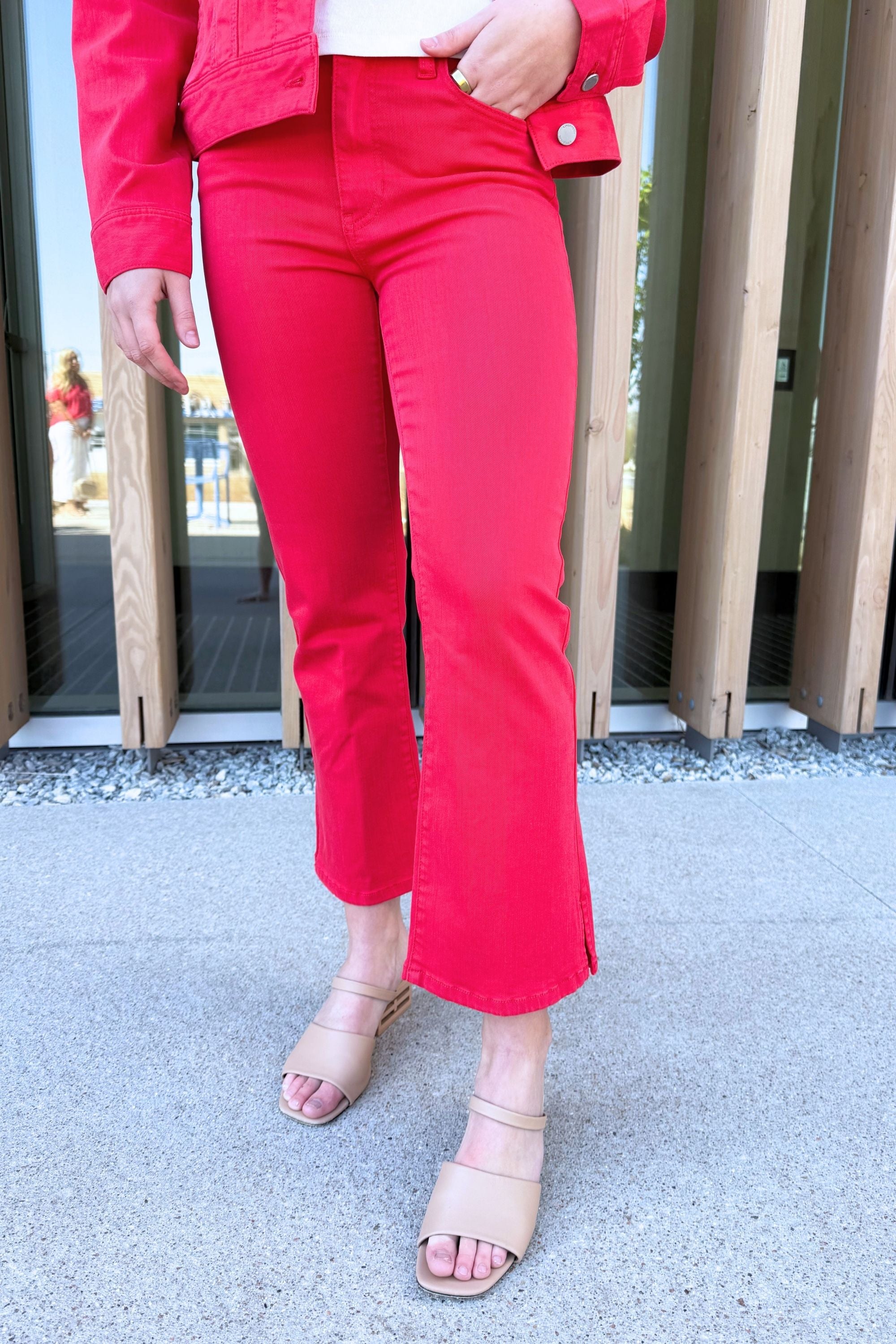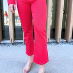A fresh update to a favorite fit. The Hannah Cropped Flare features a clean silhouette with a subtle slit hem that adds movement and a modern edge. Finished in Cherry Rose for a bold pop of color that stands out wherever you wear it.