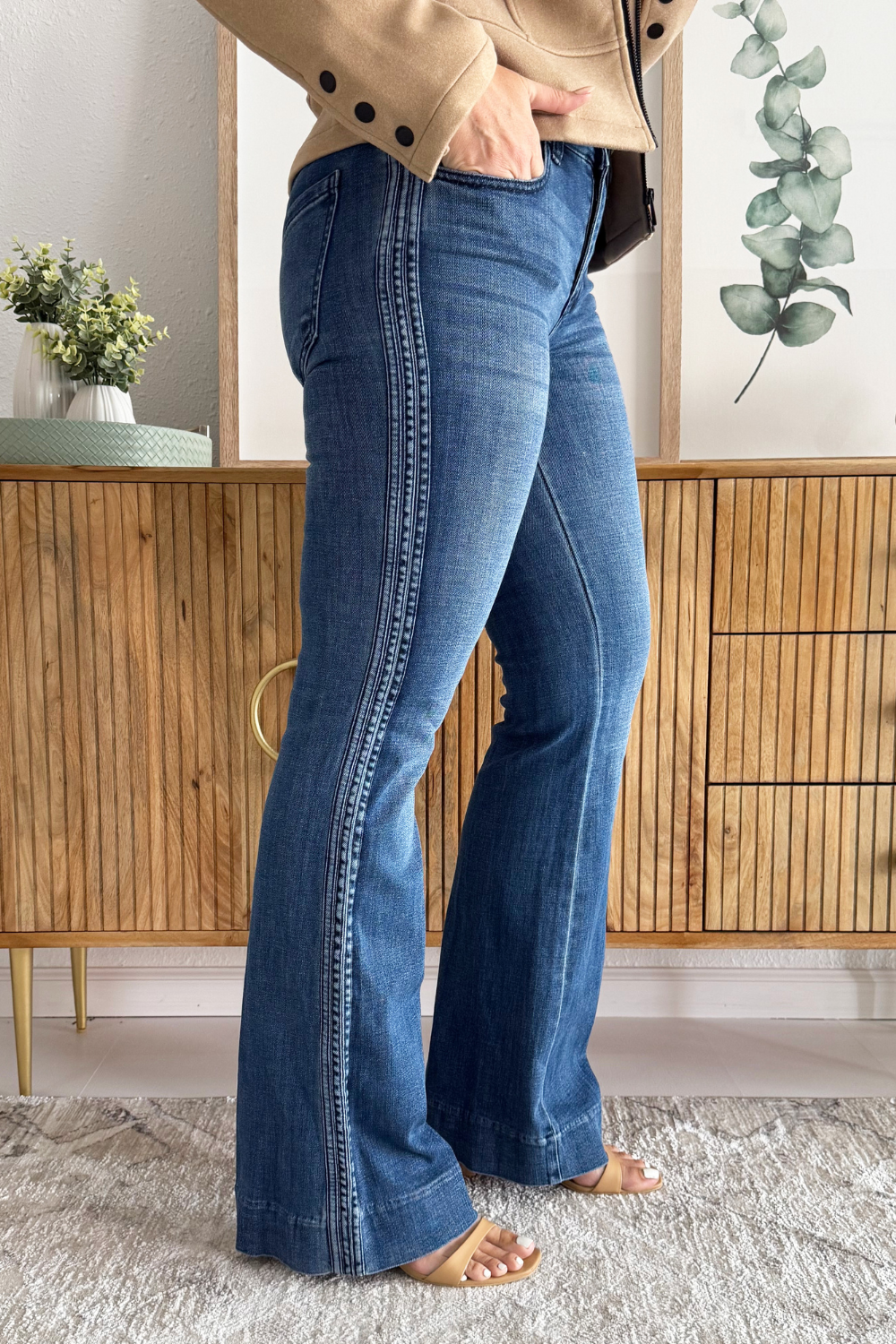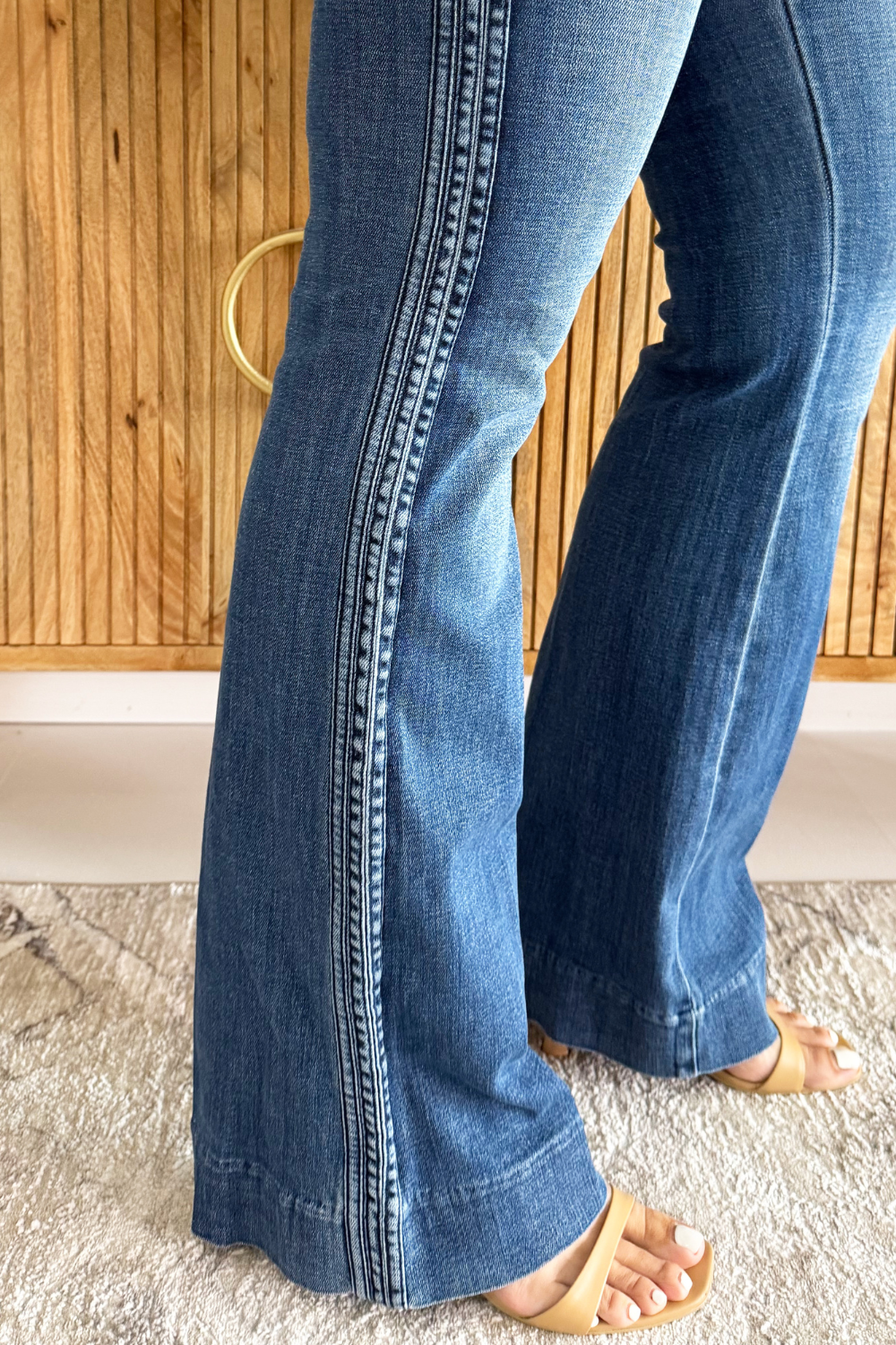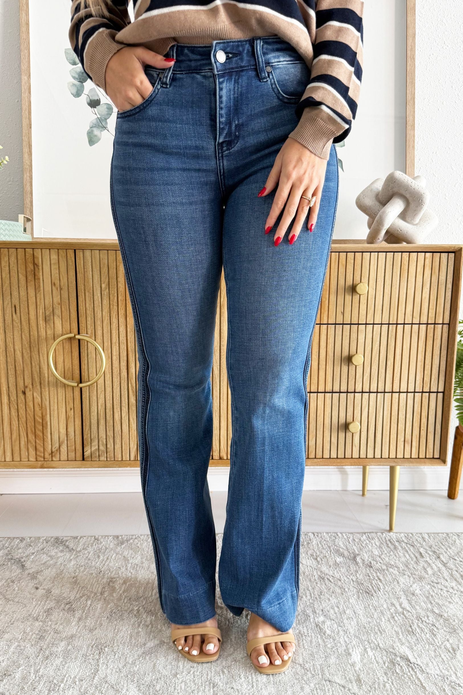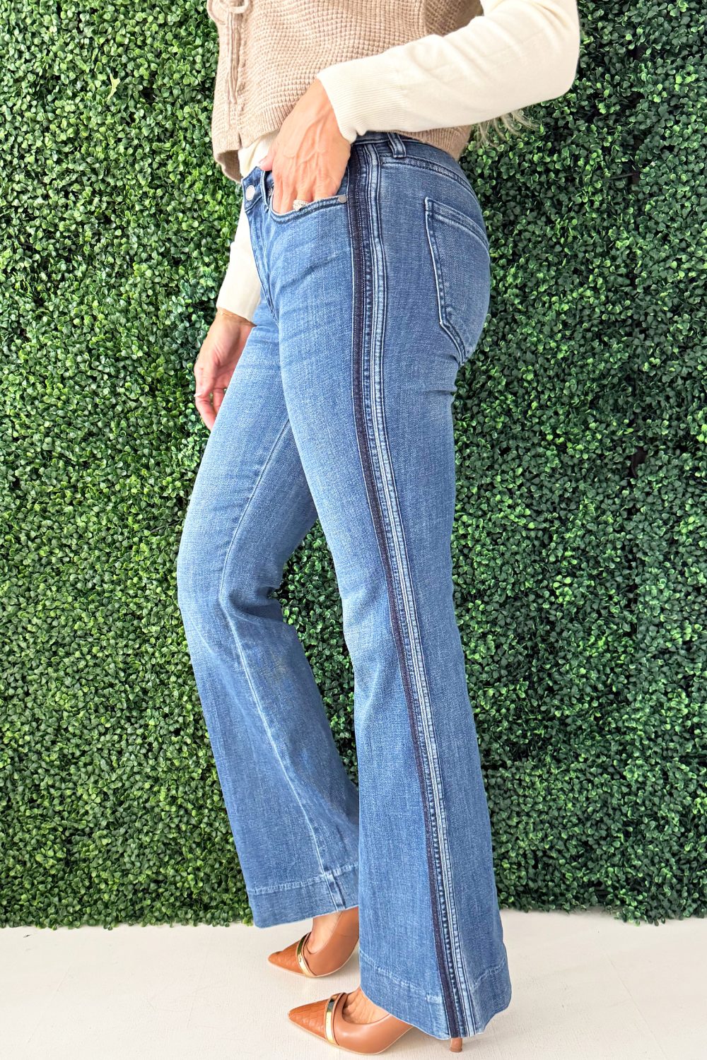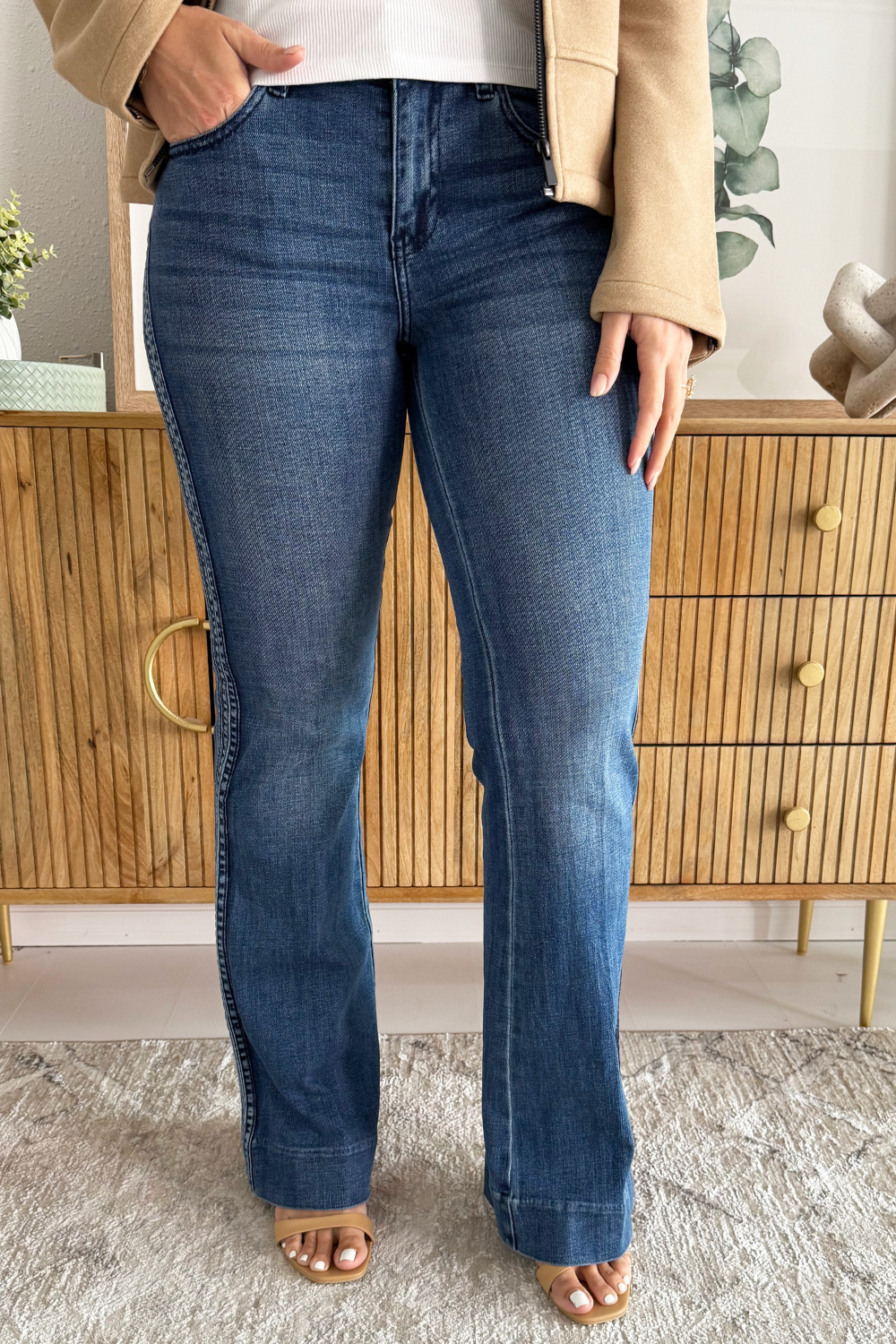 This new Hannah Flare from Liverpool is the perfect dark denim for this fall! Featuring a side trim detail and regular hem, these are a must have! The 32" inseam allows you to dress them up with your favorite heels and top for the perfect date night look!