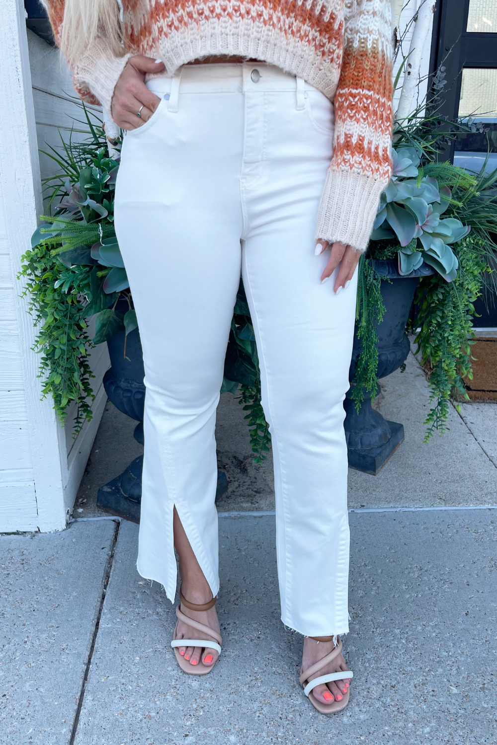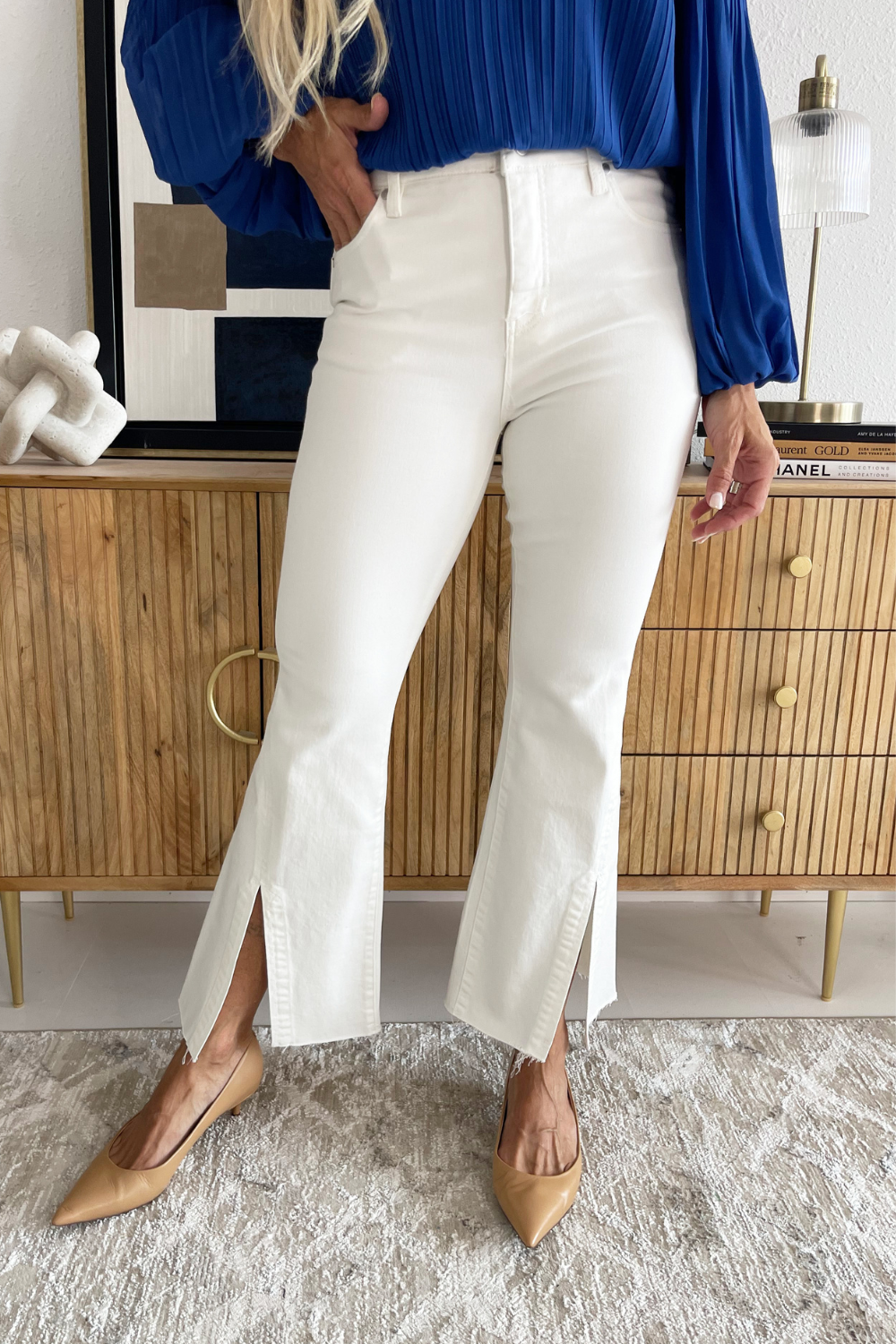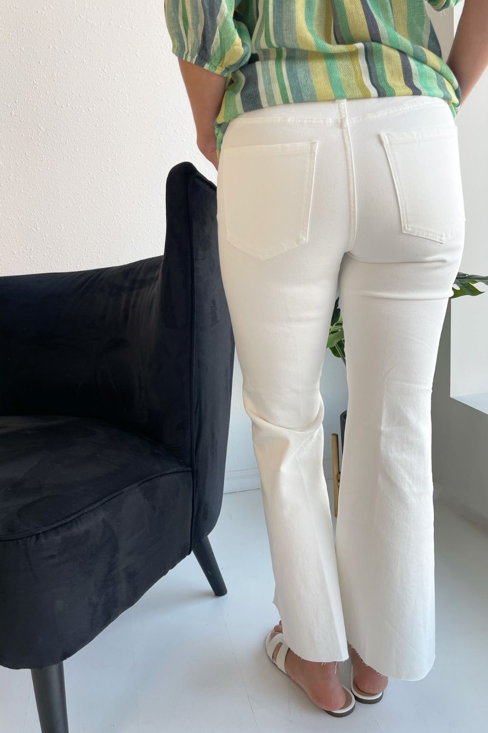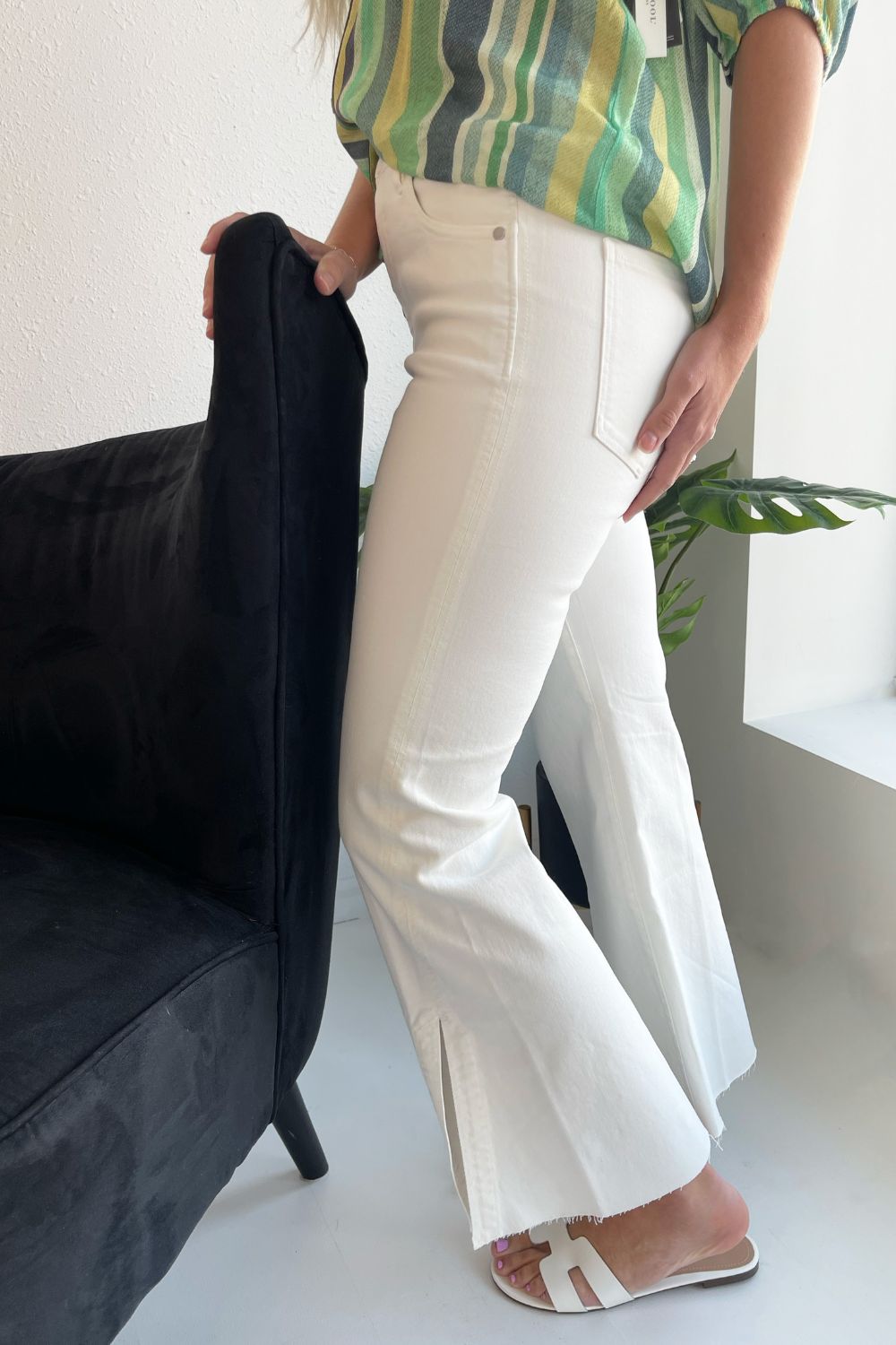 One of our favorite jeans this season, designed with vintage-like characteristics to give a rigid look while keeping comfort in mind. A high waisted silhouette, slim fit and flared leg offers a sleek and elongating look. A flattering twisted side slit at the hem take this jean to a new level! Dress it up with a beautiful blouse and heels or down with a classic tee and sneakers.
