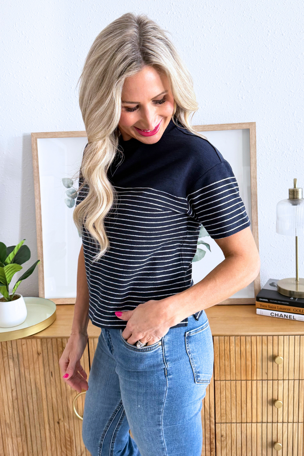 The Harbor Striped Shirt features a textured knit blend in a relaxed silhouette. Pair with the Andre Wide Leg Pant for your most comfortable outfit yet.