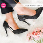 Our patented design of plastic heels covers is mechanically engineered to keep heels from sinking into the grass. By increasing the surface area on the bottom of the heel, the pressure is distributed, so you can walk across unsupportive or uneven surfaces with ease (yup, they're also great for picturesque-but-impossible-to-walk-on surfaces like cobblestones). With Solemates high heel grass protectors, you won't sink into the spongiest lawns—and your favorite heels will be spared an unnecessary (and often ineffective) cleaning.