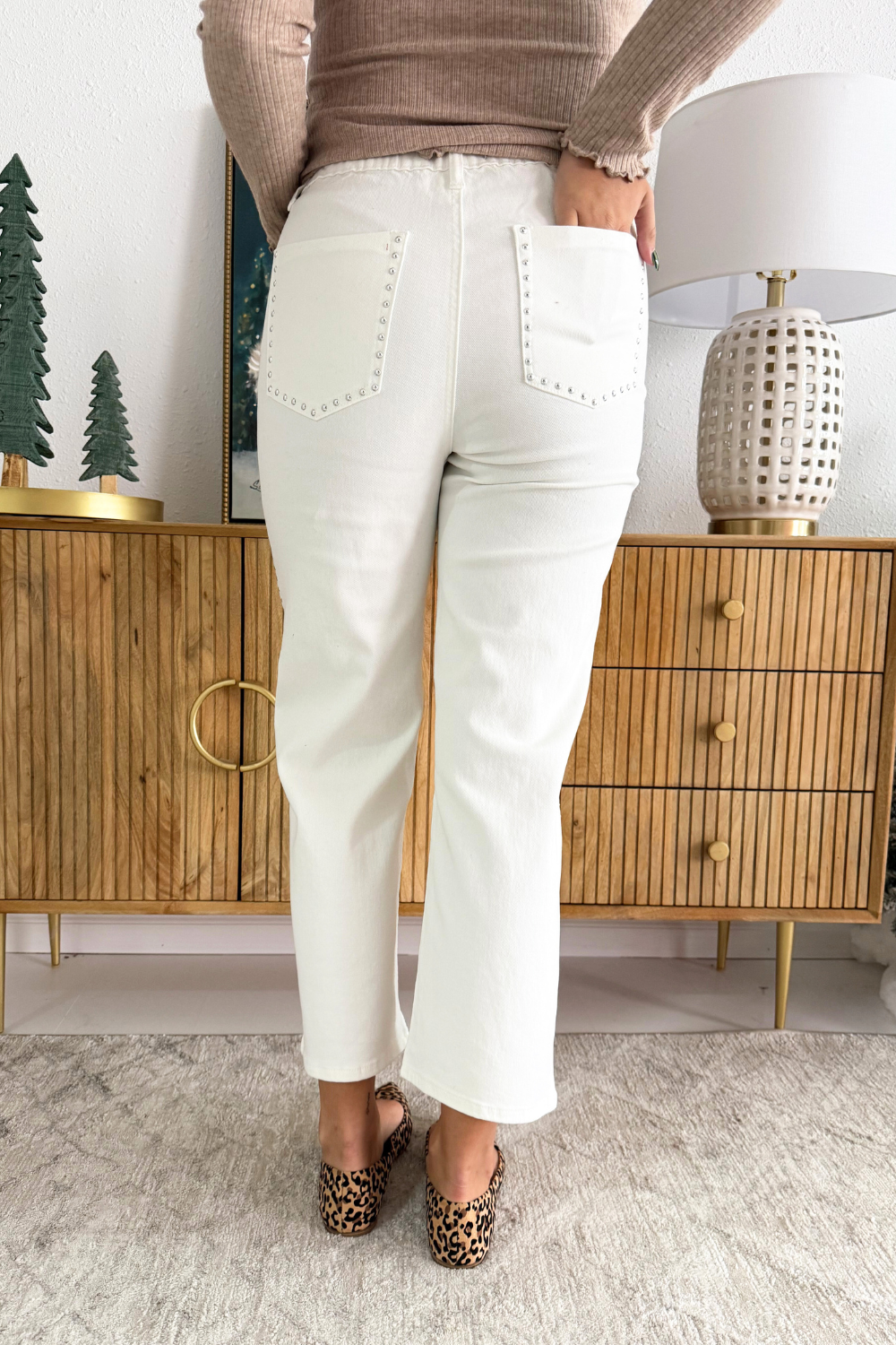 Elevate your look with these high-waist straight-leg pants, designed with sleek stud detailing along the sides for an edgy yet polished finish. The flattering silhouette and comfortable fit make them a versatile pick. Easy to pair with blouses, sweaters, or a statement top for day-to-night styling!