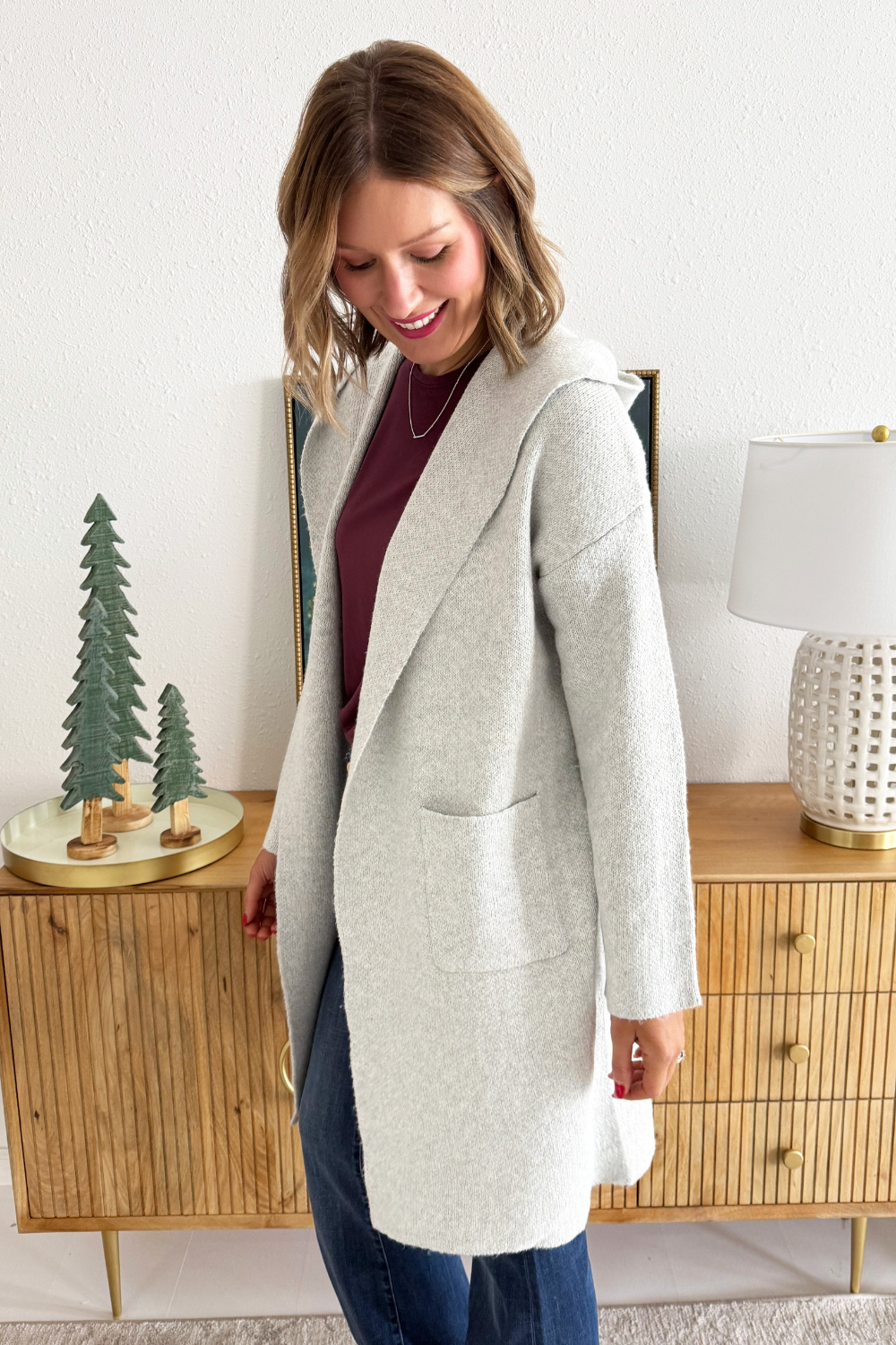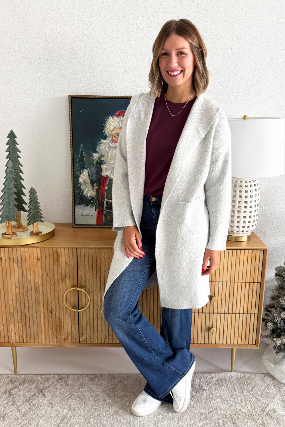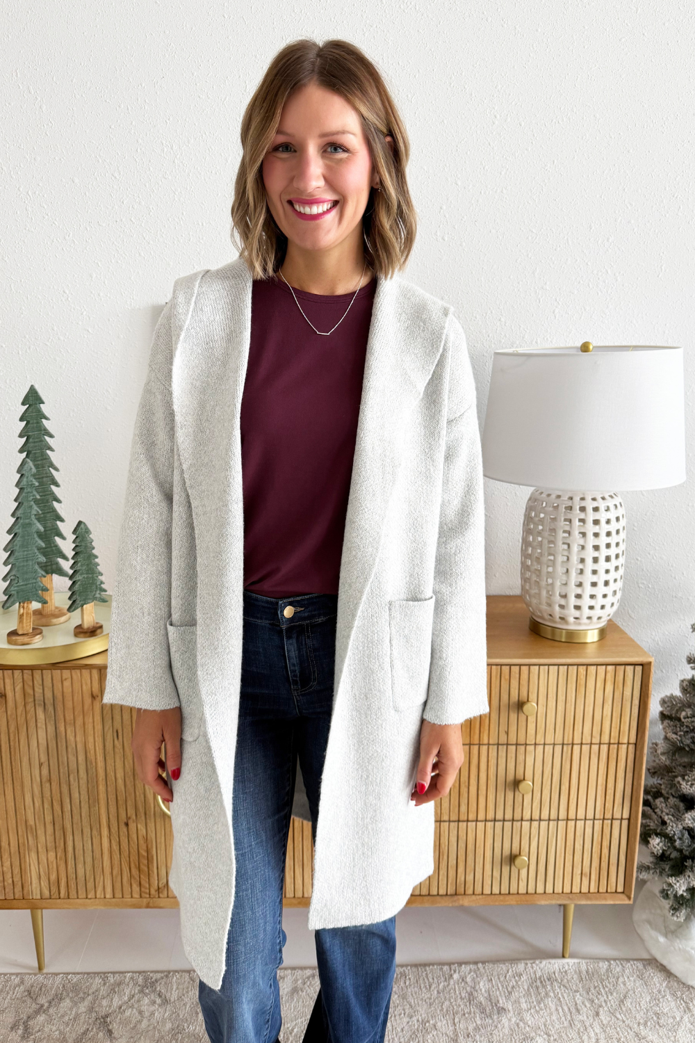 Perfect for the cooler weather, this Hooded Brushed Knit Open Cardigan is going to be something you keep reaching for! Throw over your favorite basic and denim for an effortlessly cozy look!