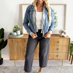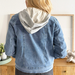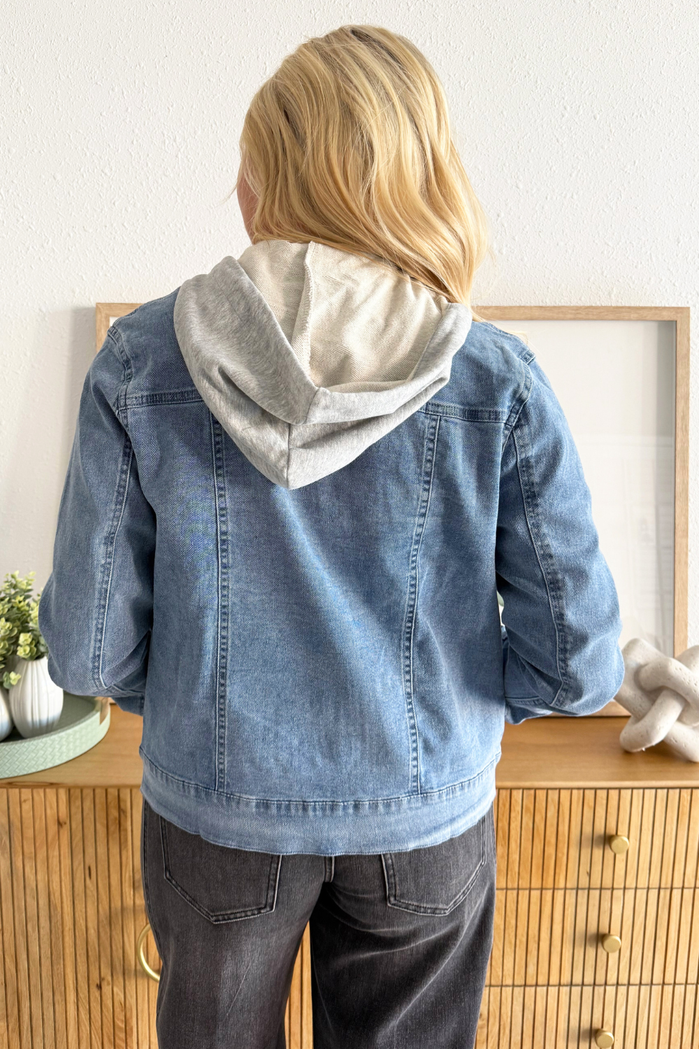 This Hooded Sweatshirt Denim Jacket takes two classics and blends them for the perfect wardrobe piece! The faux sweatshirt liner makes this the perfect layered piece without all the bulk! Throw over any top and pair back to denim and sneakers for a casual fall look!