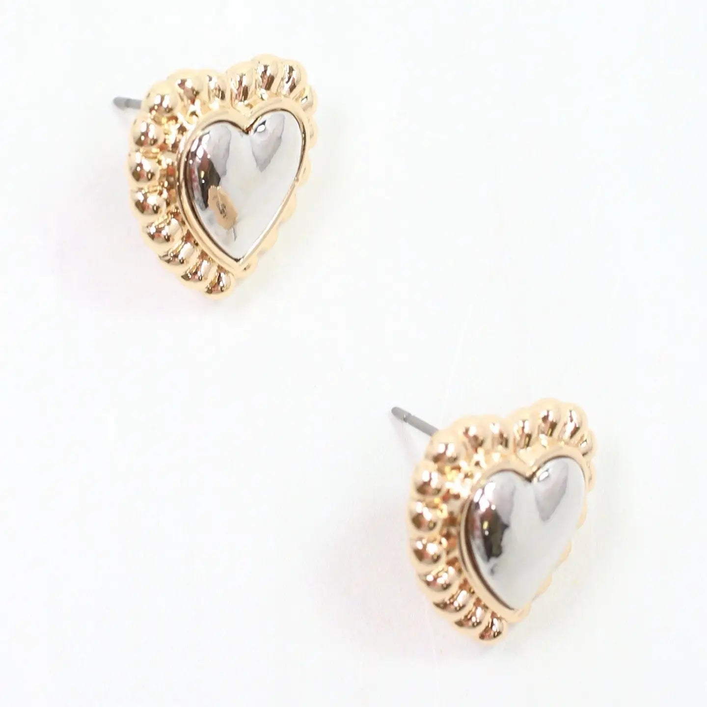 Add a touch of charm with the Howell Heart Stud, where shiny silver meets gold ribbed edges for a playful mix of metals. These adorable studs brighten any outfit with their sparkling contrast and sweet heart shape, making them perfect for everyday fun or special moments.