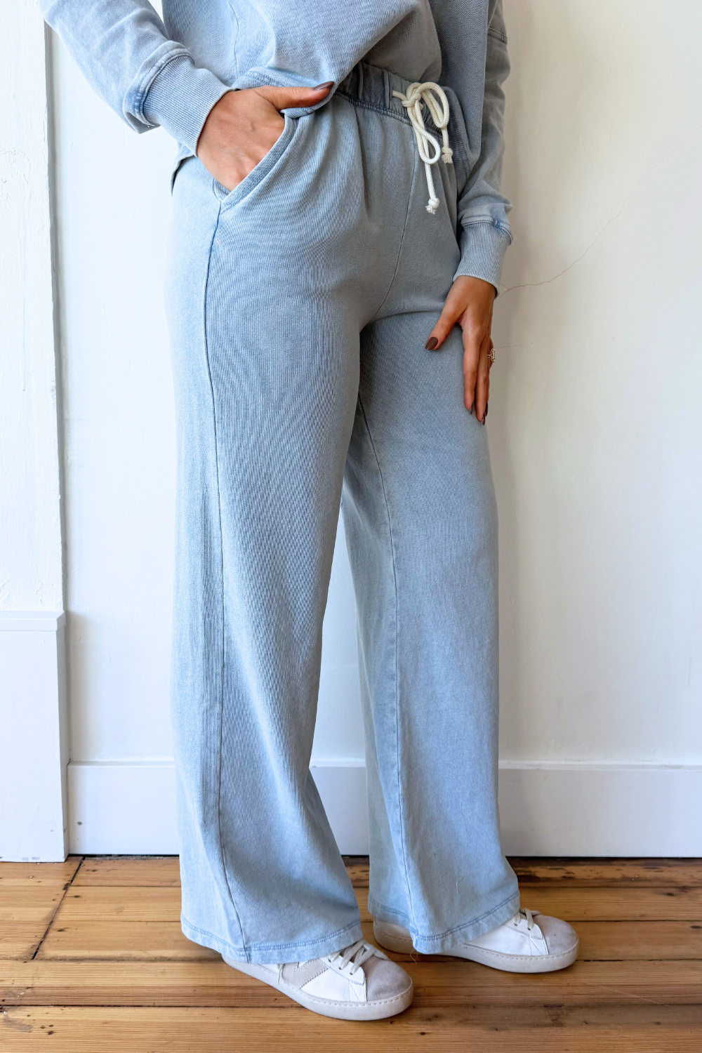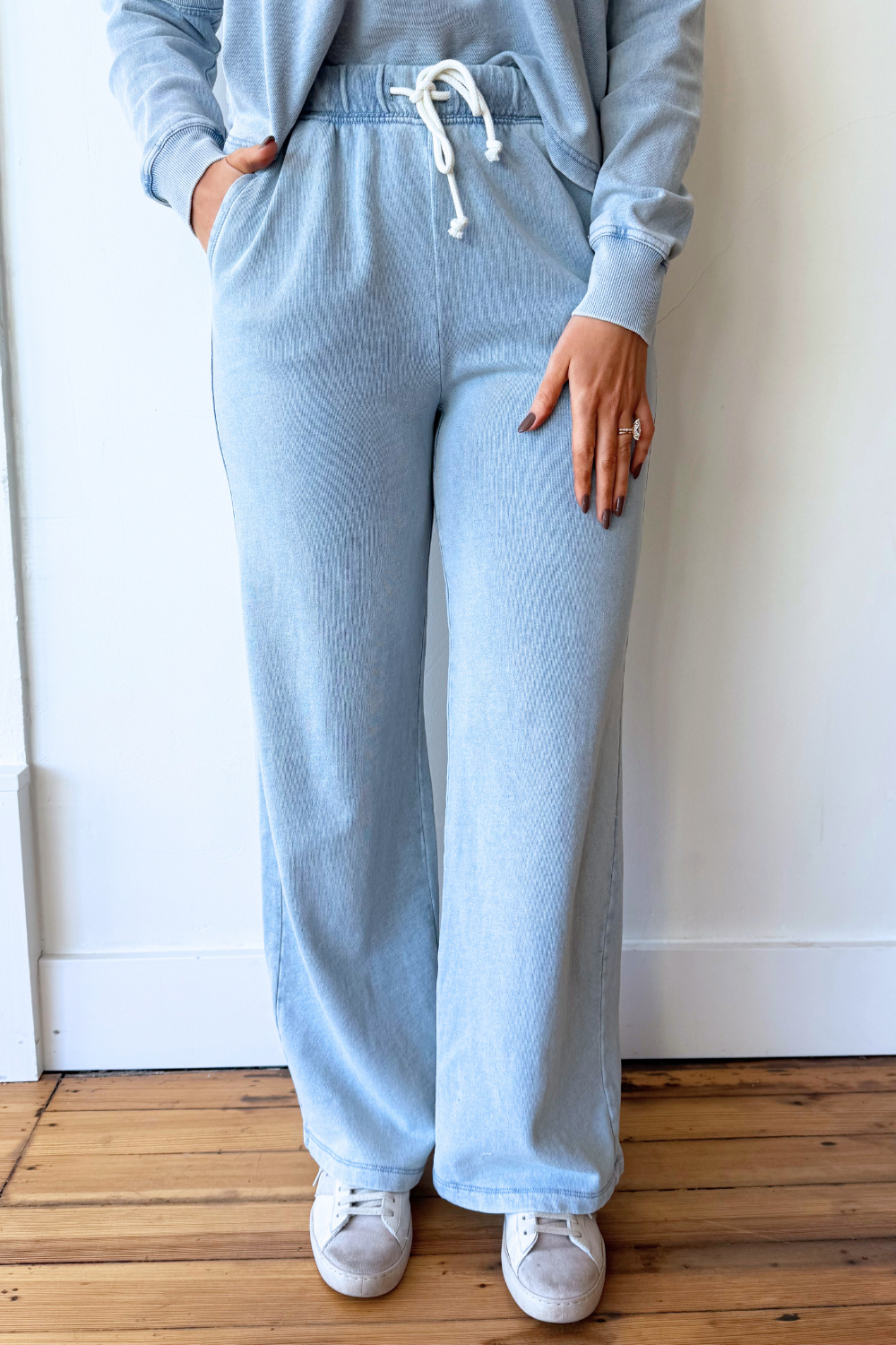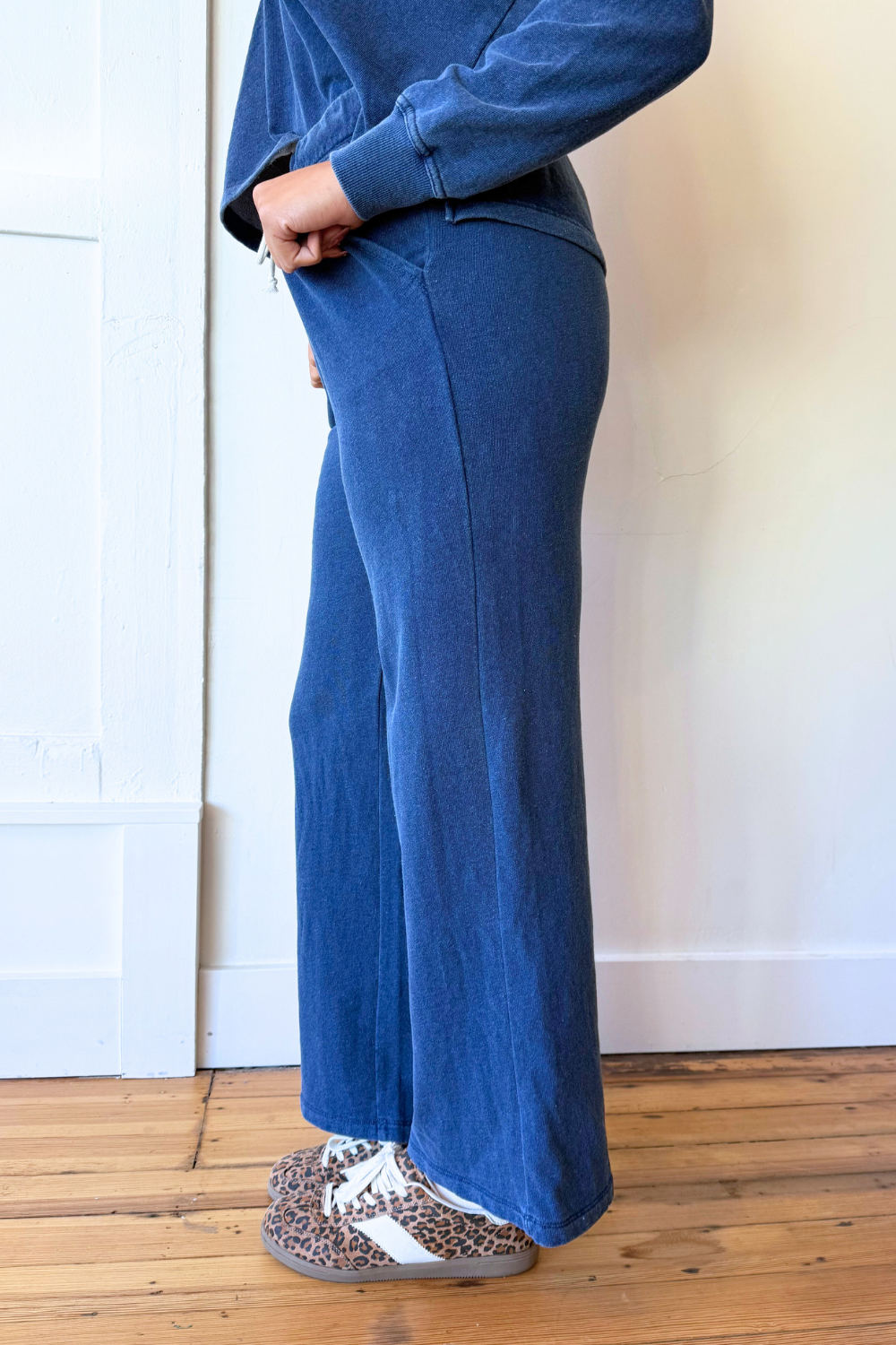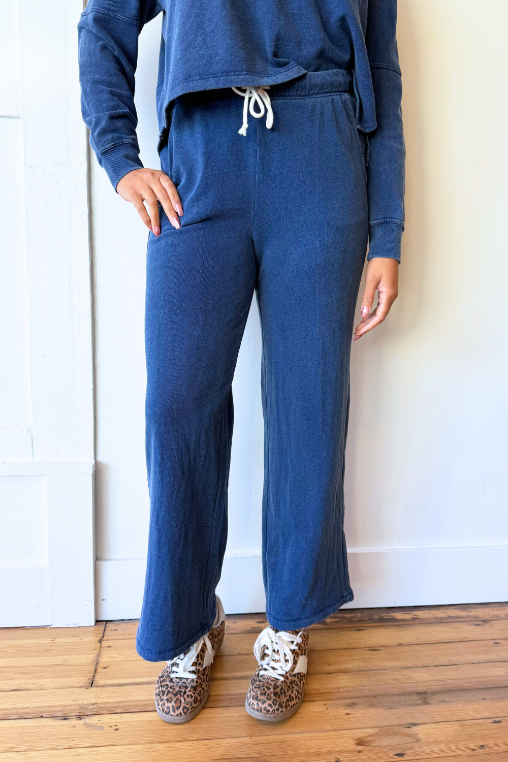 The Hunter Knit Denim Pant combines the comfort of soft knit fabric with the classic look of denim for an easy, everyday essential. Designed with a relaxed yet flattering fit, these pants offer all-day comfort while maintaining a polished, casual style. Perfect for pairing with the Delphine Knit Denim Sweatshirt!