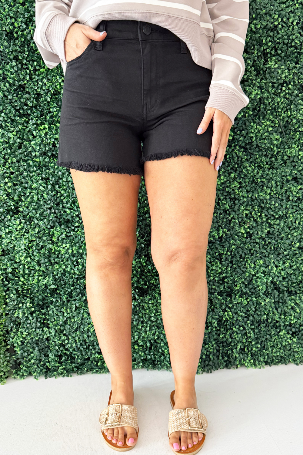 The Jane High Rise Shorts from Kut are a best seller year after year! These classic denim cutoff shorts feature a high waist, inky-black wash and softly frayed hemline. Wear them with your favorite tee and sneakers for an easy casual look.
