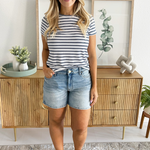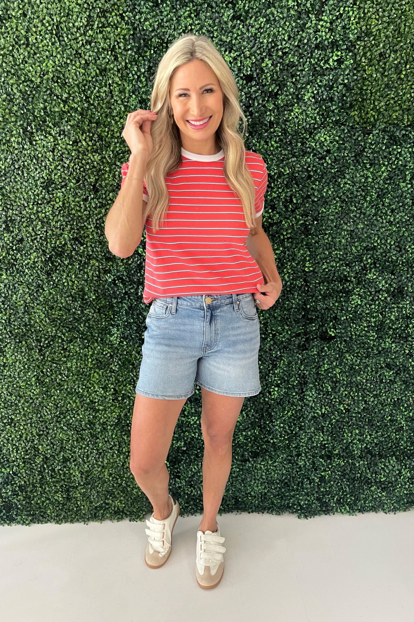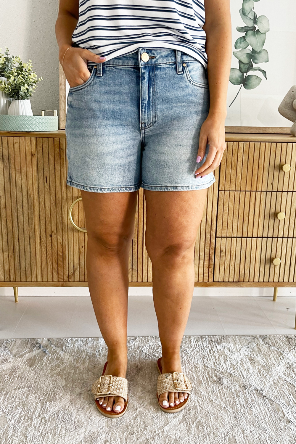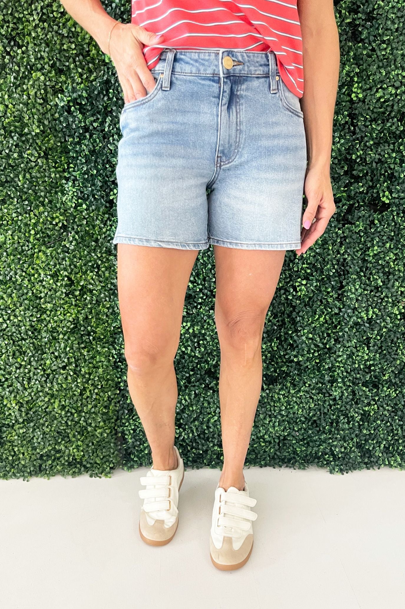 The Jane High Rise Short W/ Regular Hem from Kut is a closet staple! These high-rise shorts have a 4 ¾” inseam and classic 5 pocket styling. With a flattering fit and regular hem, these shorts offer comfort and style for a variety of occasions.
