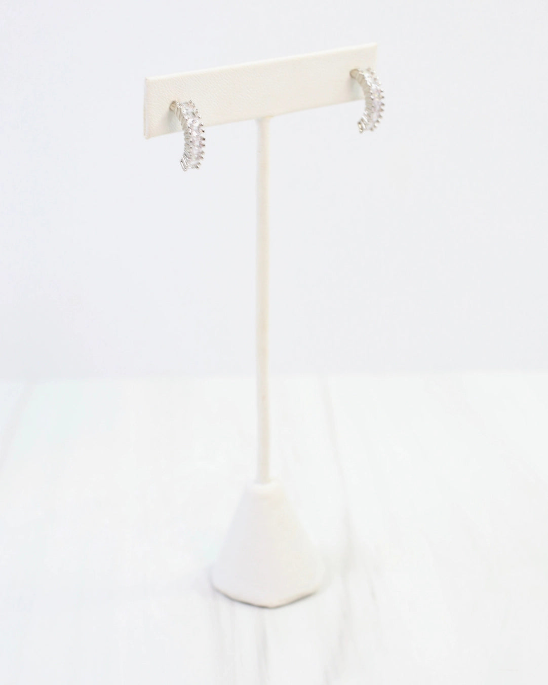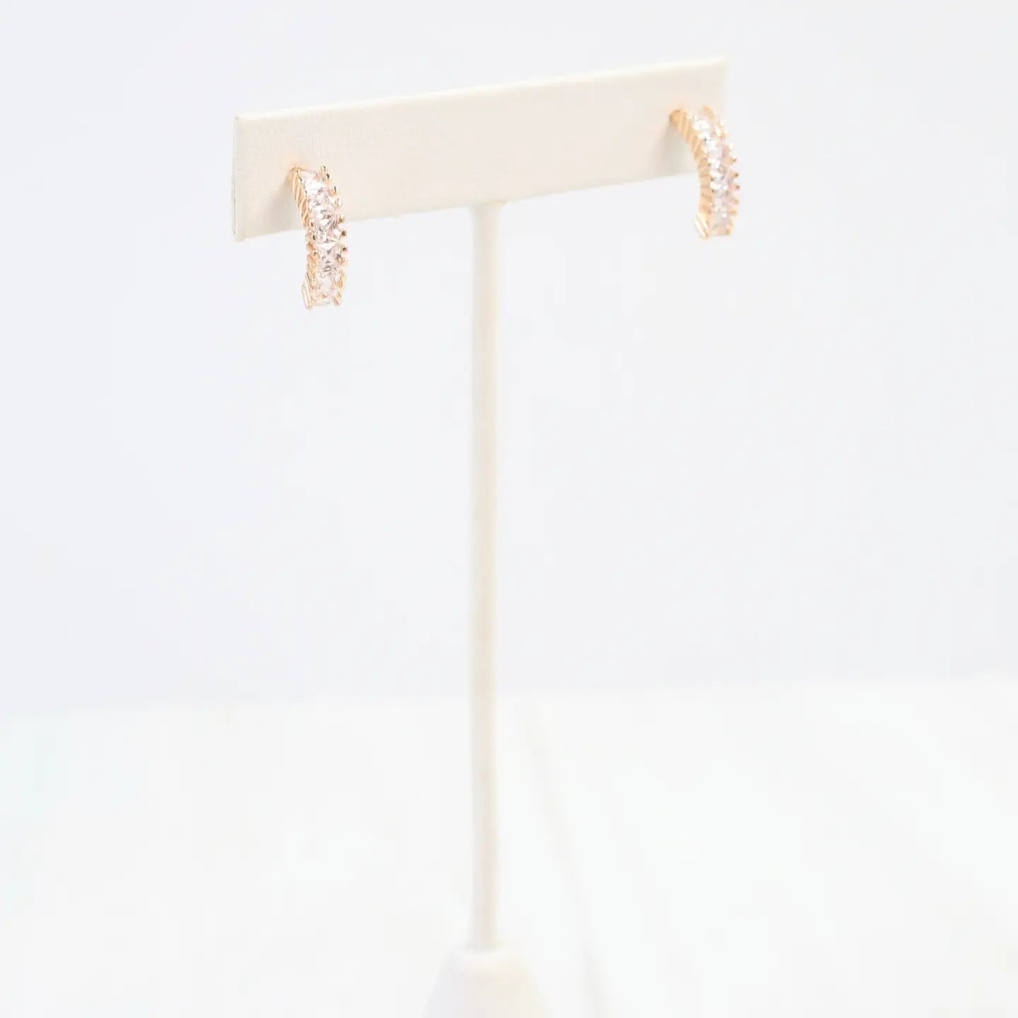 Elevate your style with the Jocelyn CZ Hoop Earring. Featuring a chic half-circle design adorned with sparkling cubic zirconia stones, these earrings add a touch of glamour to any outfit. Perfect for both everyday wear and special occasions, they effortlessly highlight your fashion-forward edge.