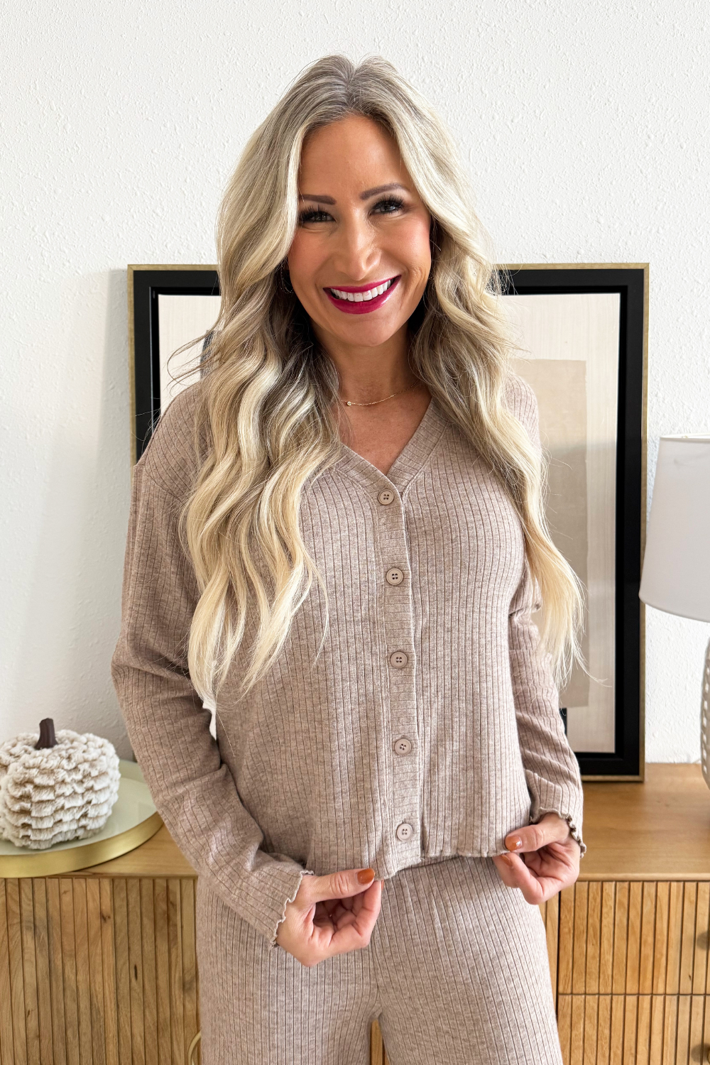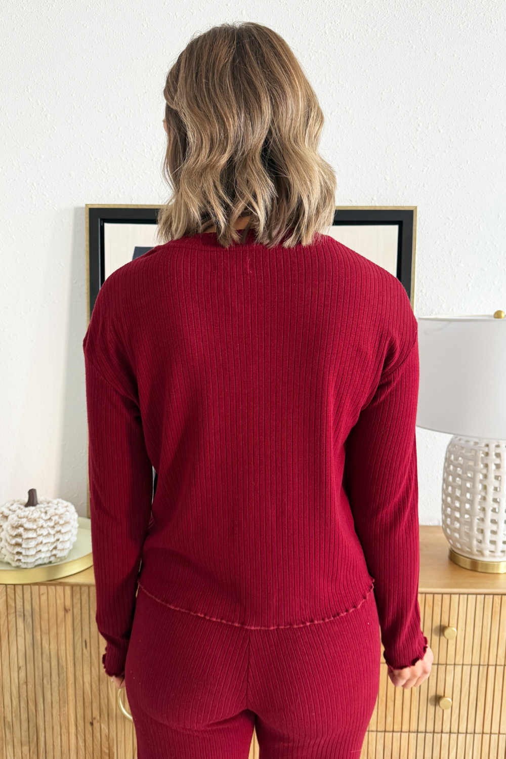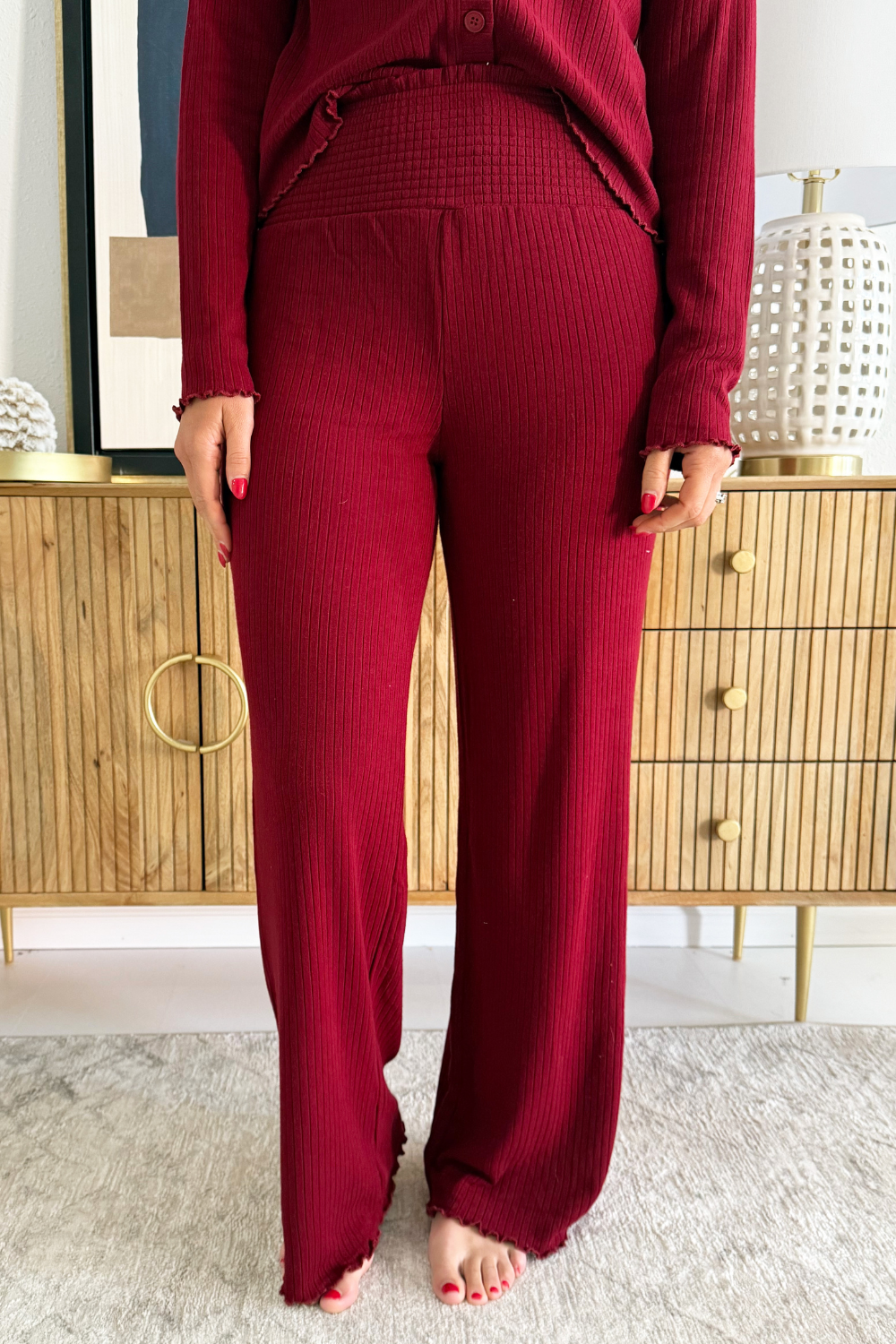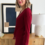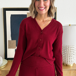 Comfortable and cozy, the Joy Pajama Set will help you cozy up on the couch for a Christmas movie this holiday season! The button up V-Neckline top, ribbed texture fabric, and elastic waistband make for an add to cart no brainer!
