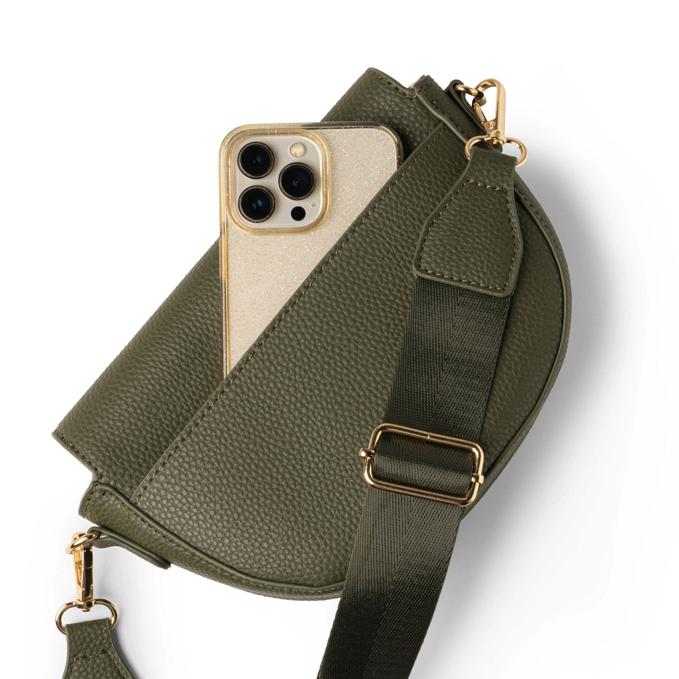 A best-selling bag perfect for any customer base! This half-moon, structured messenger features a back slip pocket, spacious main compartment and a fold over magnetic snap closure to securely store all your essentials.