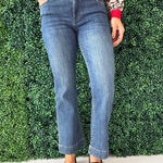 These Kelsey High Rise Ankle Flares are crafted in a rich dark wash with wide hems that add a bold finish. Built with Fab Ab for subtle shaping and finished with stretchy fabric, they’re equal parts flattering and comfortable.