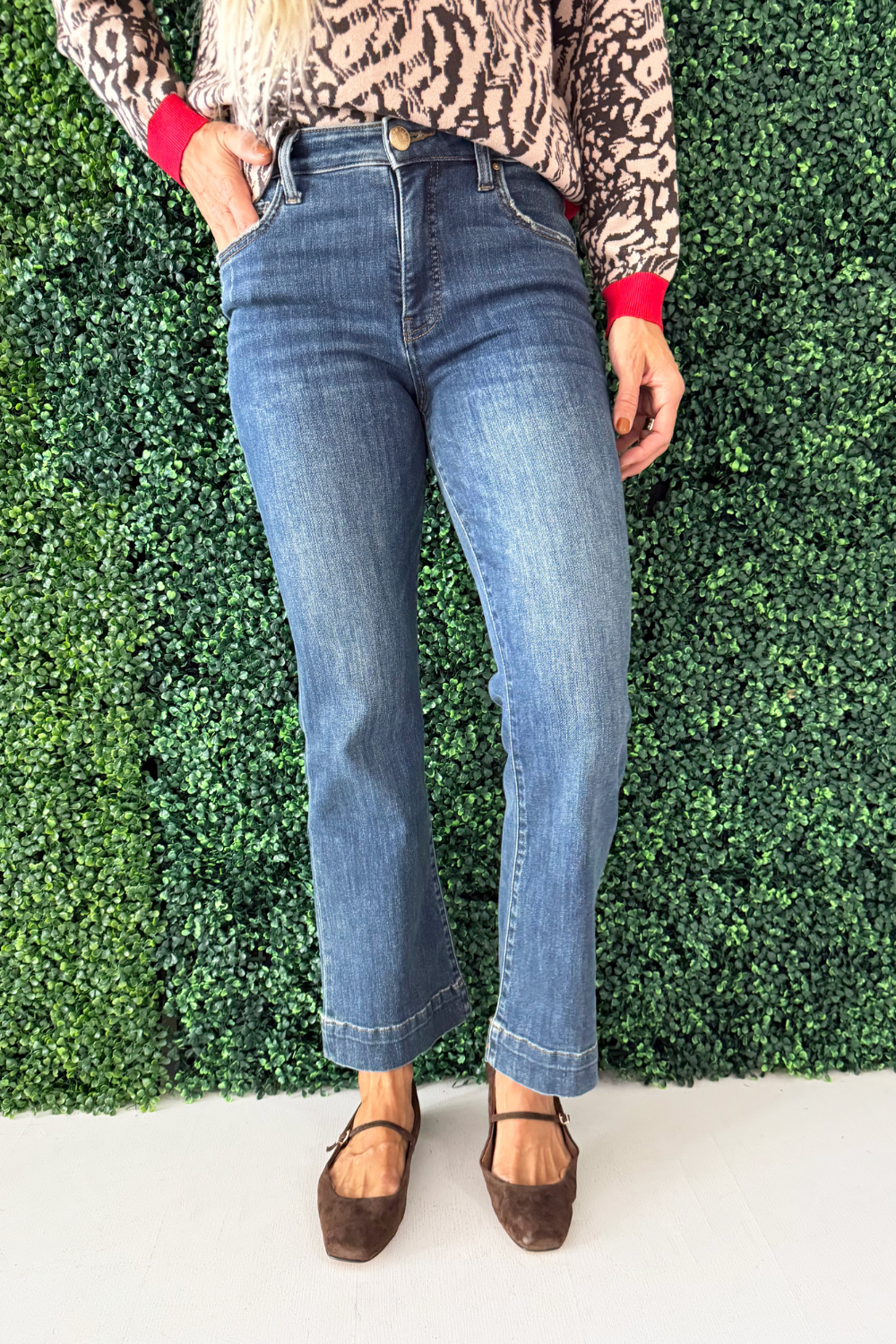 Kelsey High Rise Fab Ab Ankle Flare With Wide Hem
