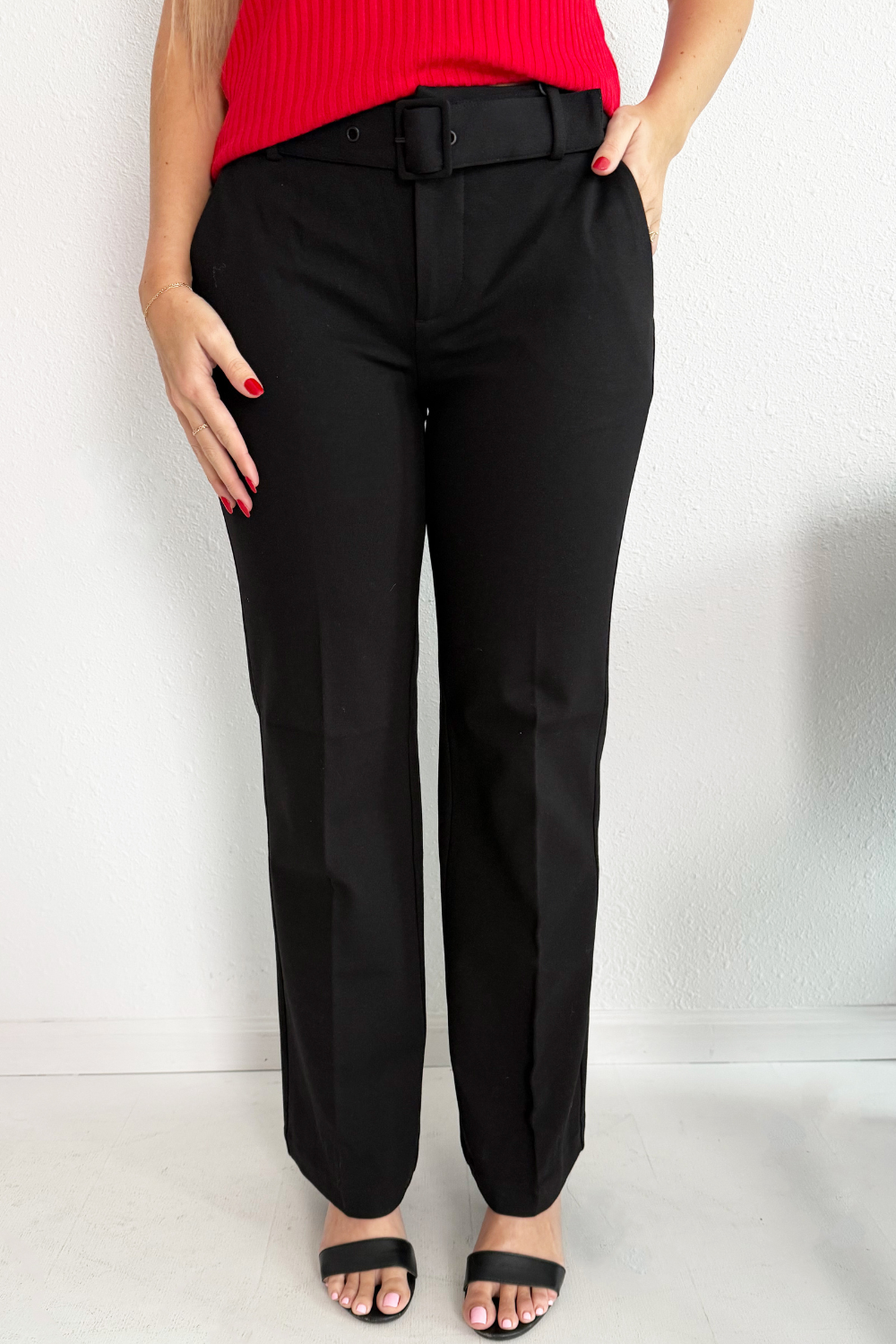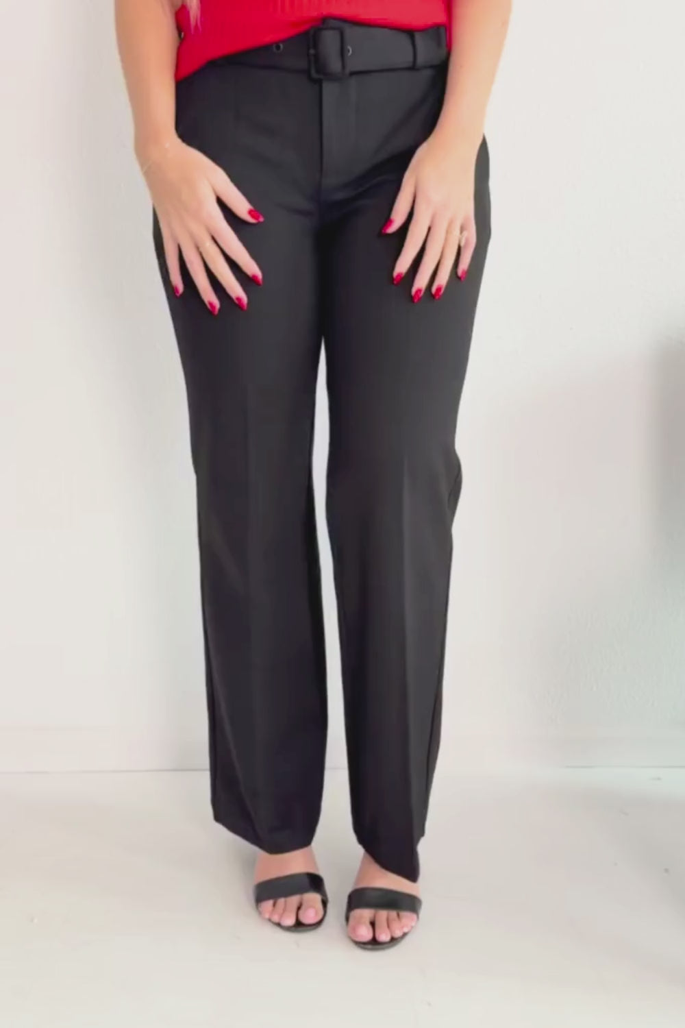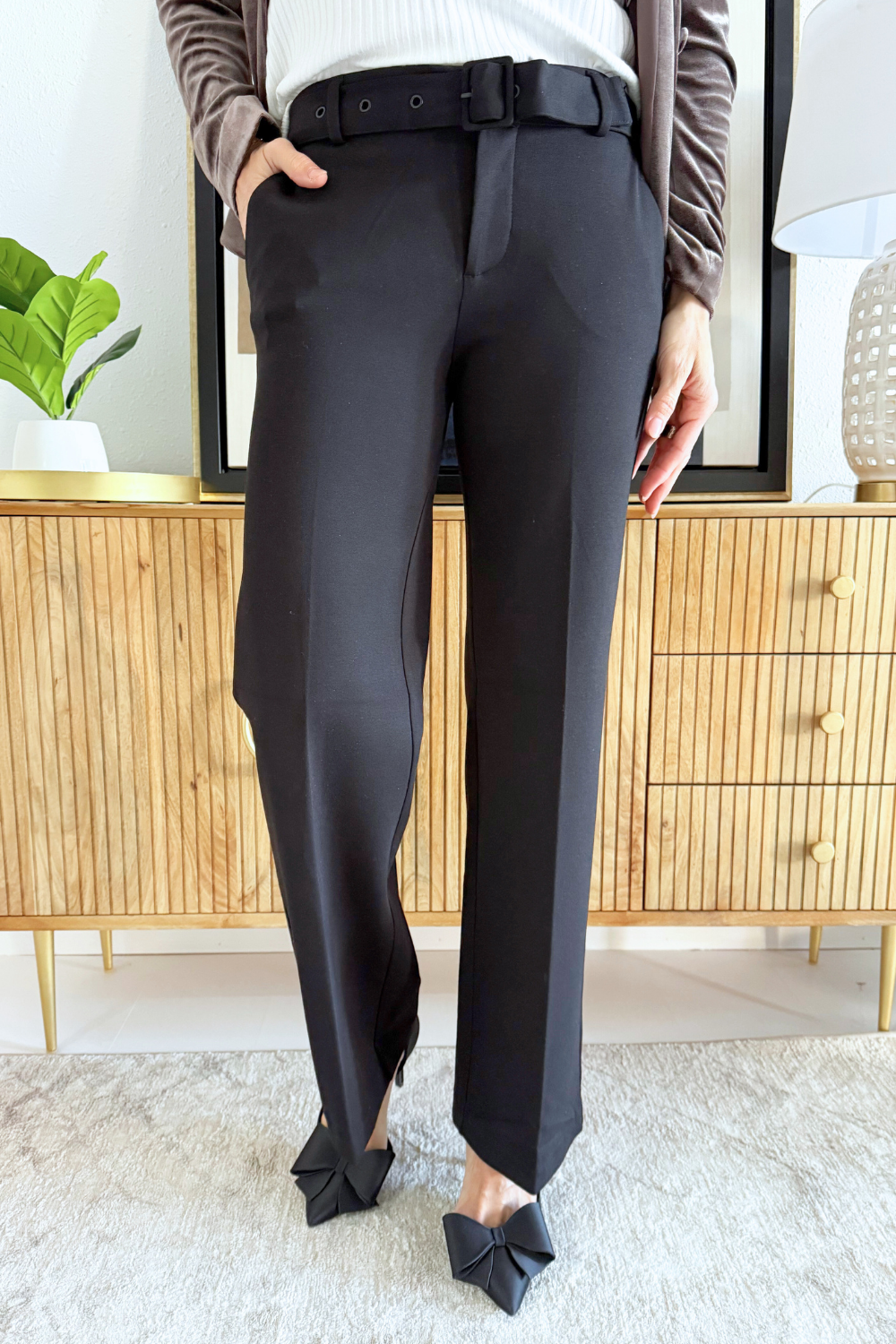 A timeless, modern wide-leg silhouette now with a chic belt. The Kelsey Trouser w/ Belt in Black offers a refined take on classic tailoring, designed to flatter with a fluid drape.