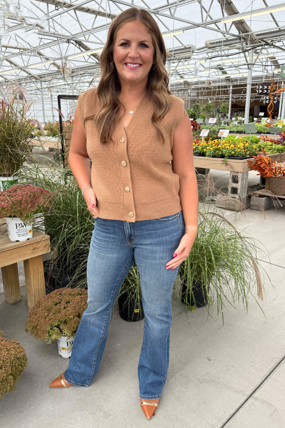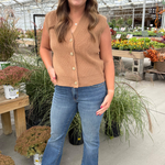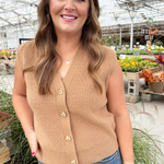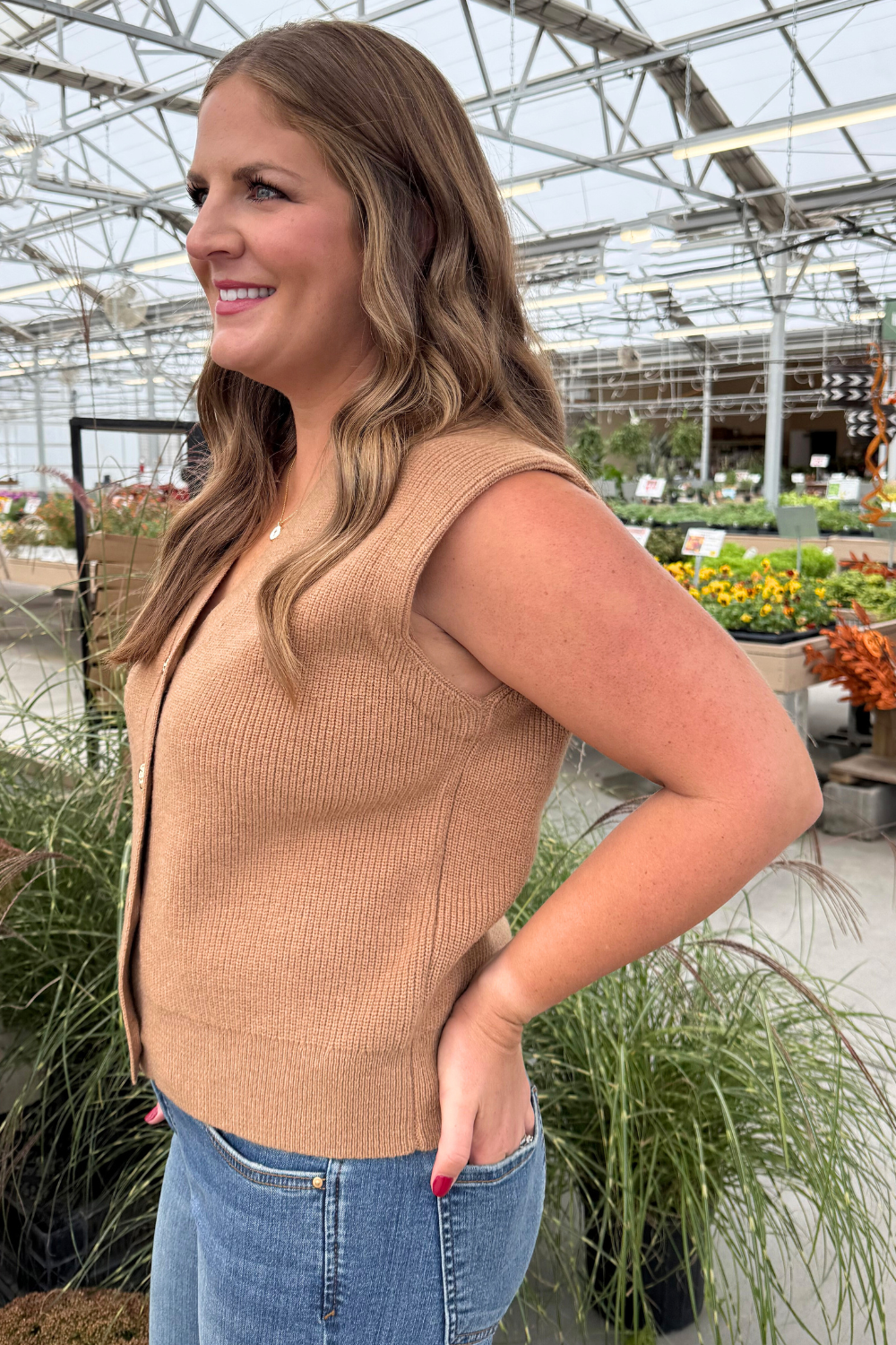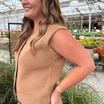 This knitted cardigan has limitless styling options that will take you year round! Featuring a ribbed texture and gold hardware, this vest is perfect for wearing on its own or thrown over a basic long sleeve! Pair back to denim and mules for an effortless look!