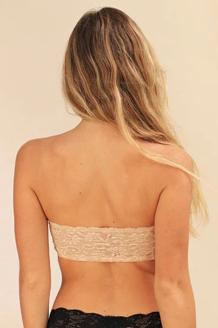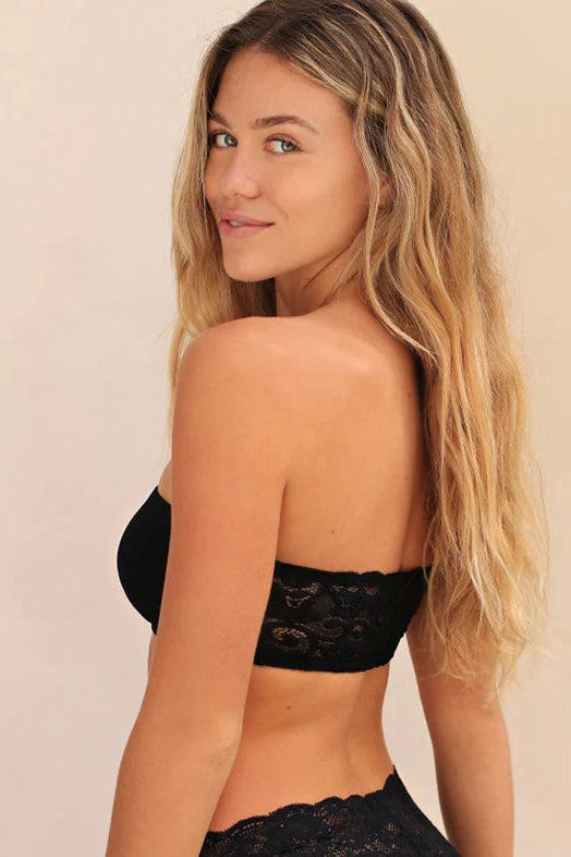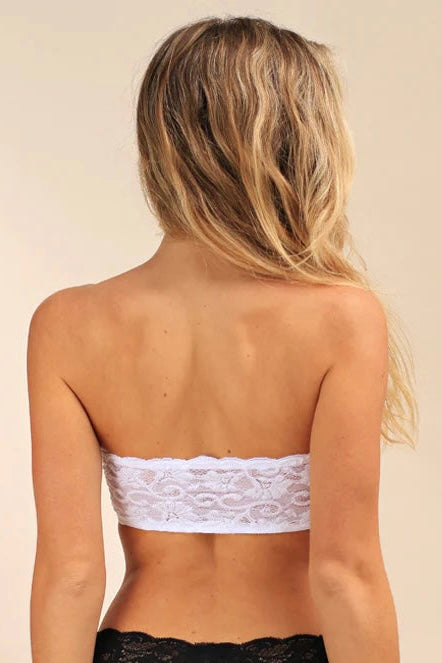 SOLUTION: Try our Boob-eez lace-back bandeau! Made from a magical mix of ultra stretchy material this bandeau stays up throughout the day (or night). The perfect pretty piece to compliment your fit - keeps straps out of sight and out of mind.