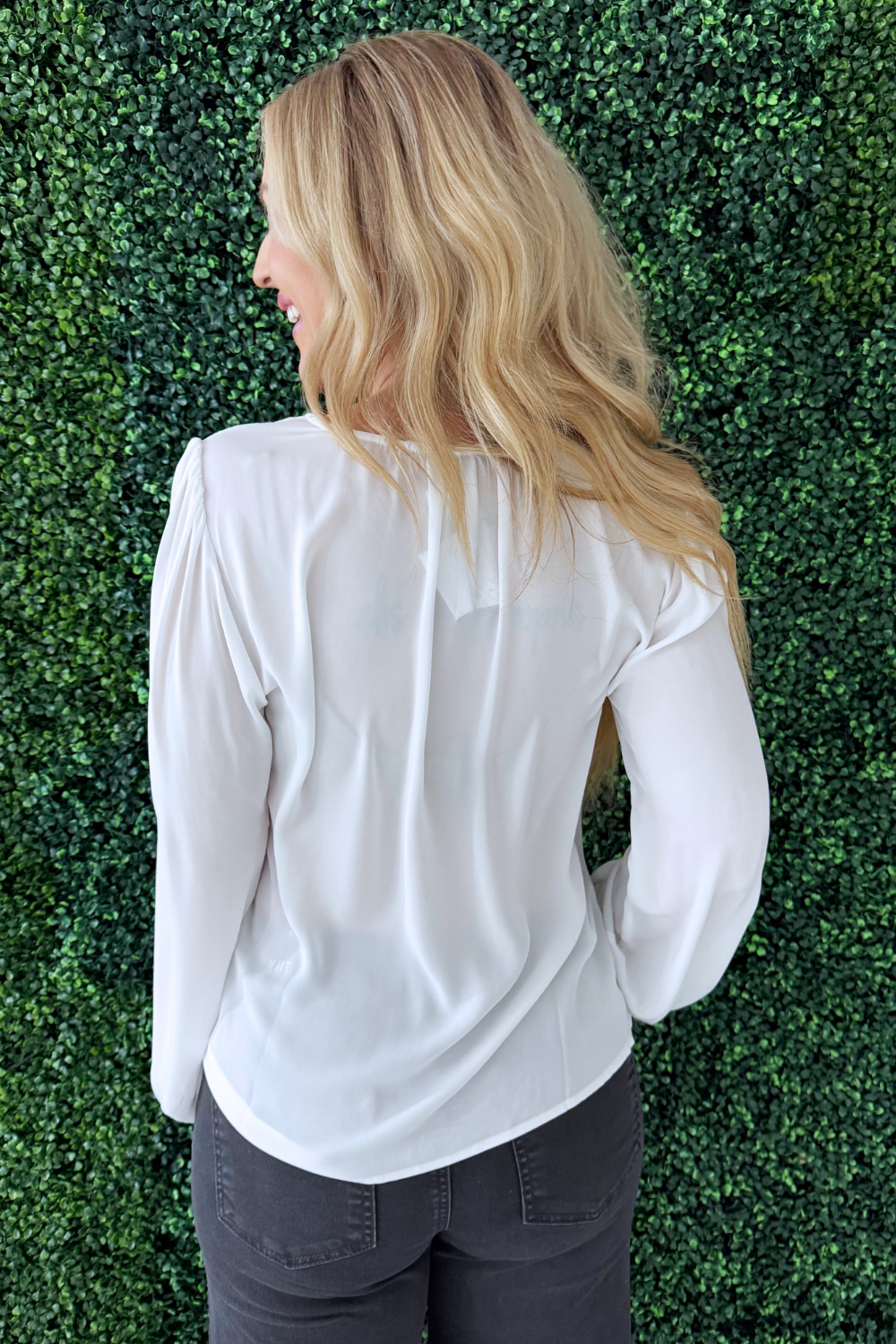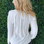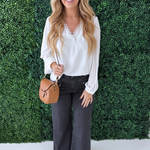 The Lace Trim V-Neck Long Sleeve Top is a romantic blouse that pairs effortlessly with trousers or skirts for work or weekend.