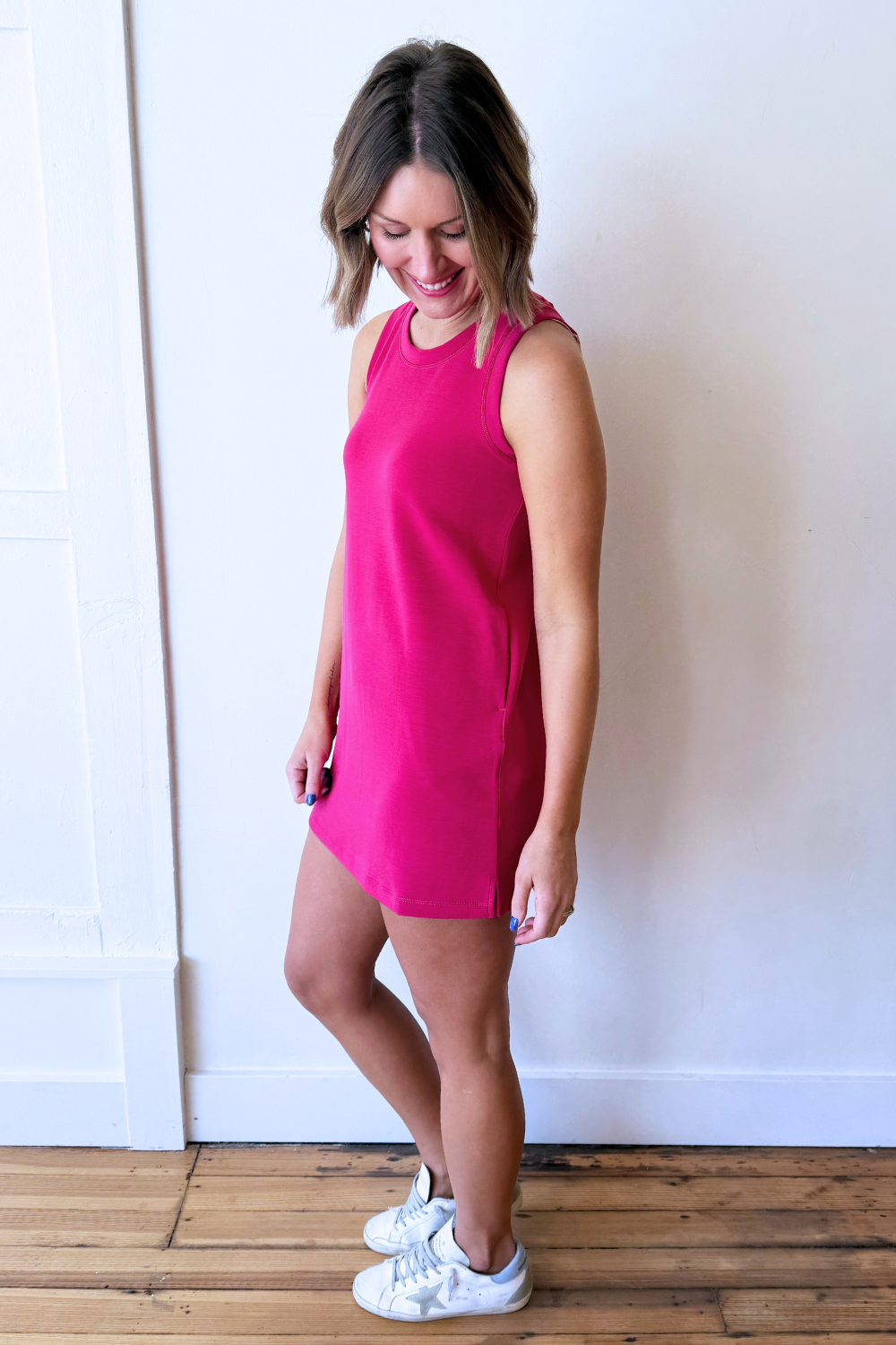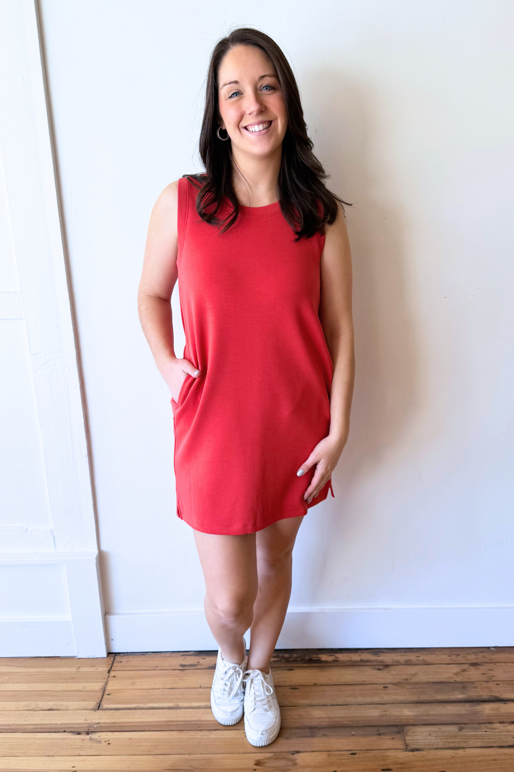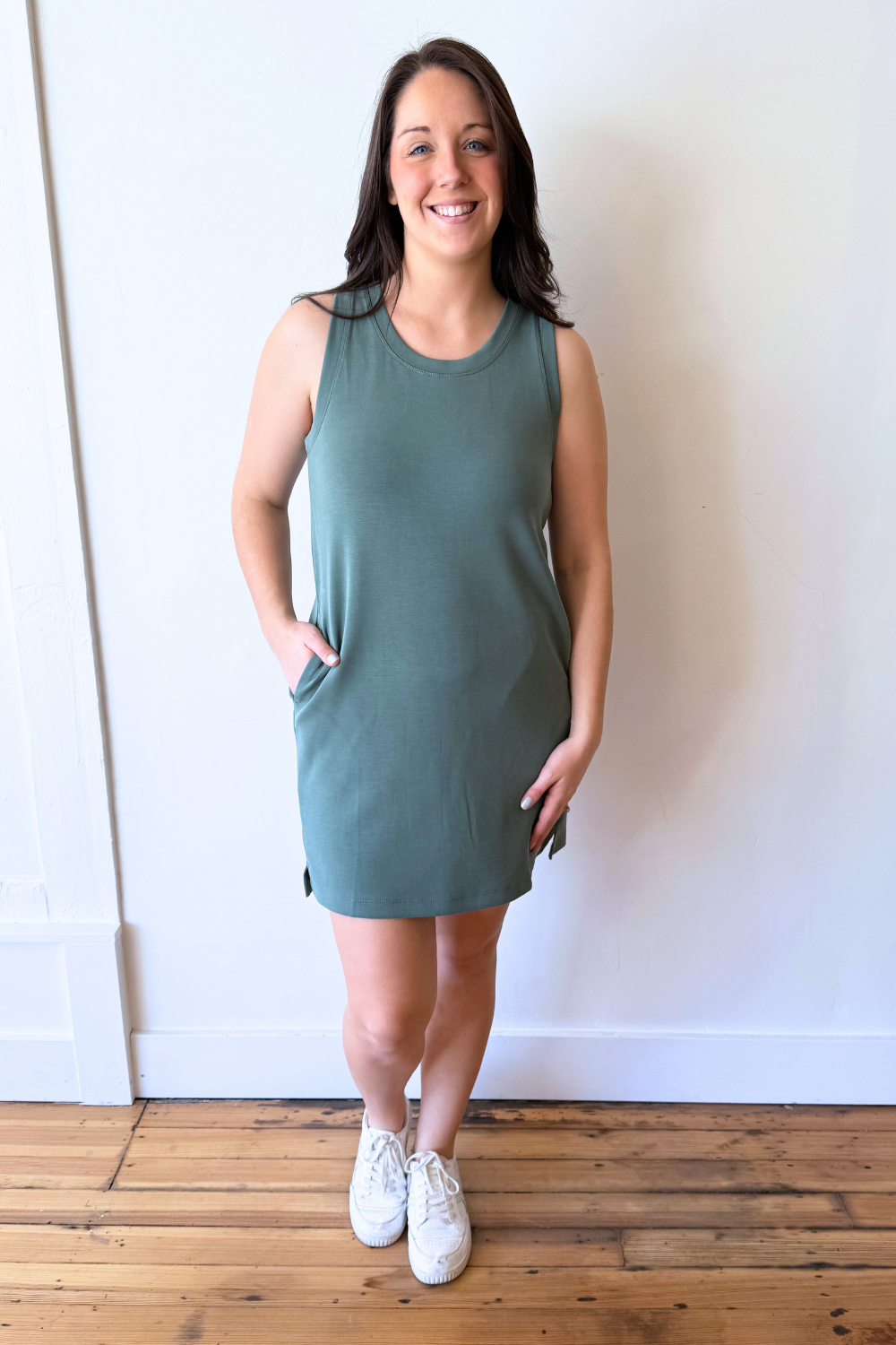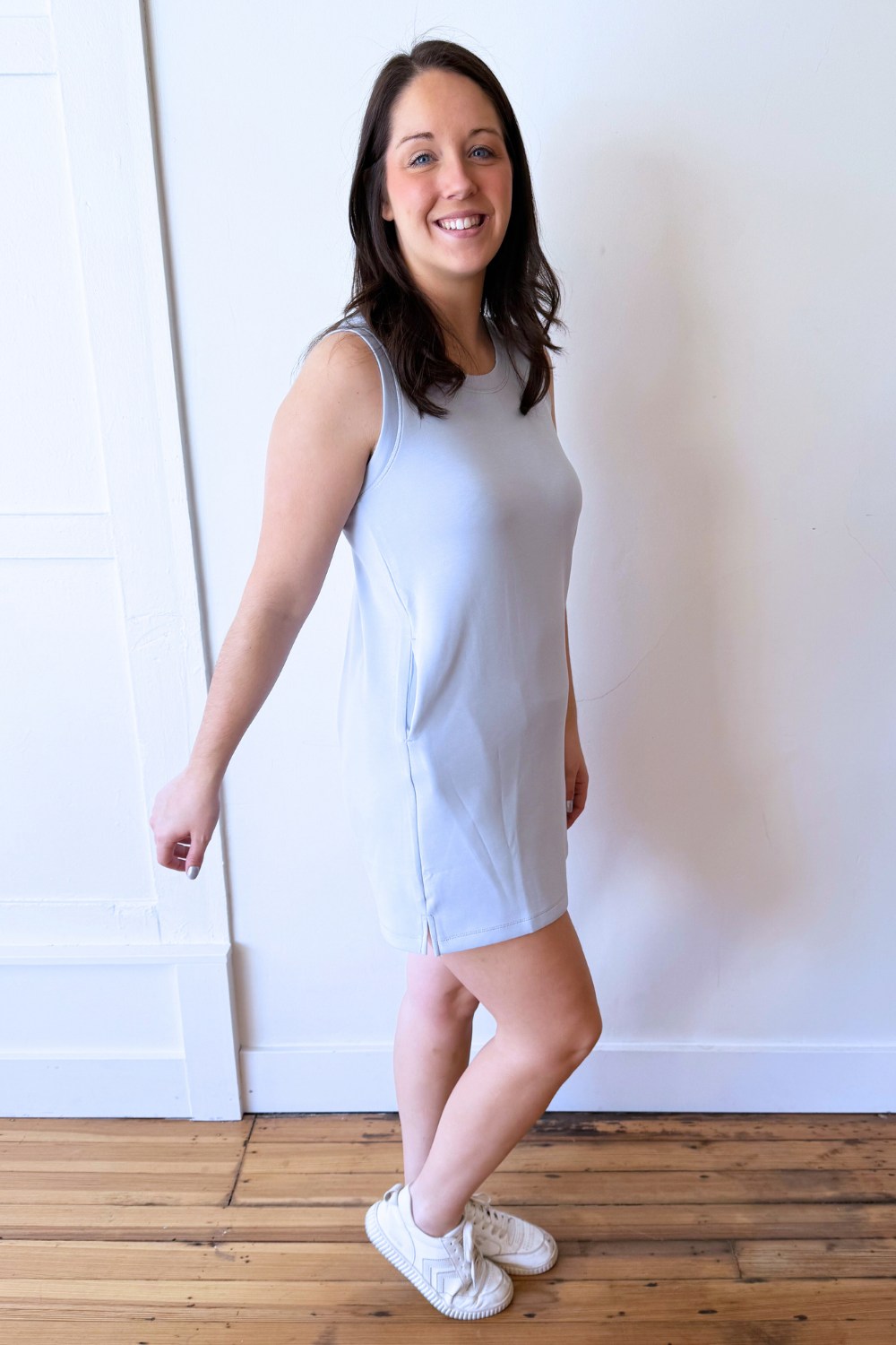 Laguna Scuba Shift Dress Meet your new grab-and-go favorite. This scuba shift dress features a clean, sleeveless silhouette with a relaxed fit that’s flattering and easy to wear. The structured-yet-soft fabric gives it a smooth finish that holds its shape beautifully from day to night.