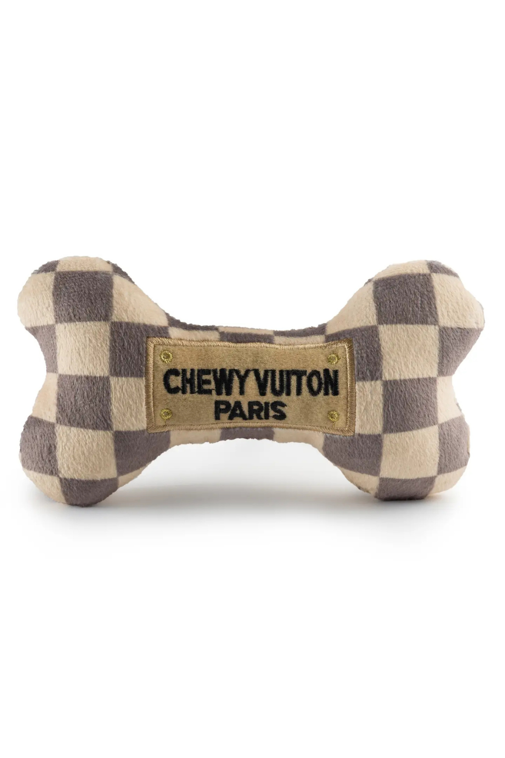 Does your haute-couture hound need a toy that’s as stylish as they are? Then look no further than the Chewy Vuiton Checker Bone Toy! It features the iconic checkered pattern that every furry fashionista drools over. The soft plush exterior provides the perfect surface to really sink their teeth into. And when they do, they’ll discover the delightful hidden squeaker inside!
