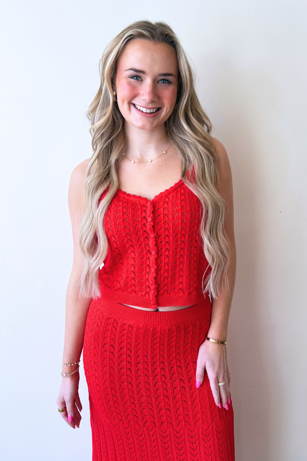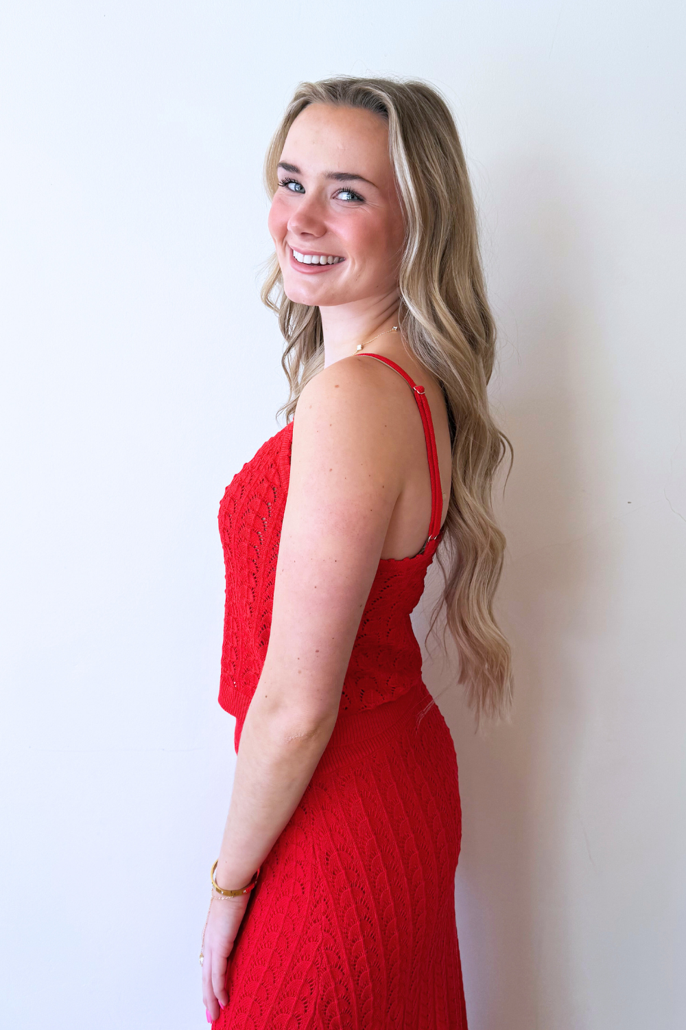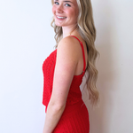 The Lexa Sweater Tank is a statement knit with a flattering, feminine feel. Designed with a textured sweater knit and a fitted silhouette, this tank is perfect for warm days or layered under a cardigan. The bold color adds an eye-catching touch while still feeling wearable. An easy piece to dress up or style casually.